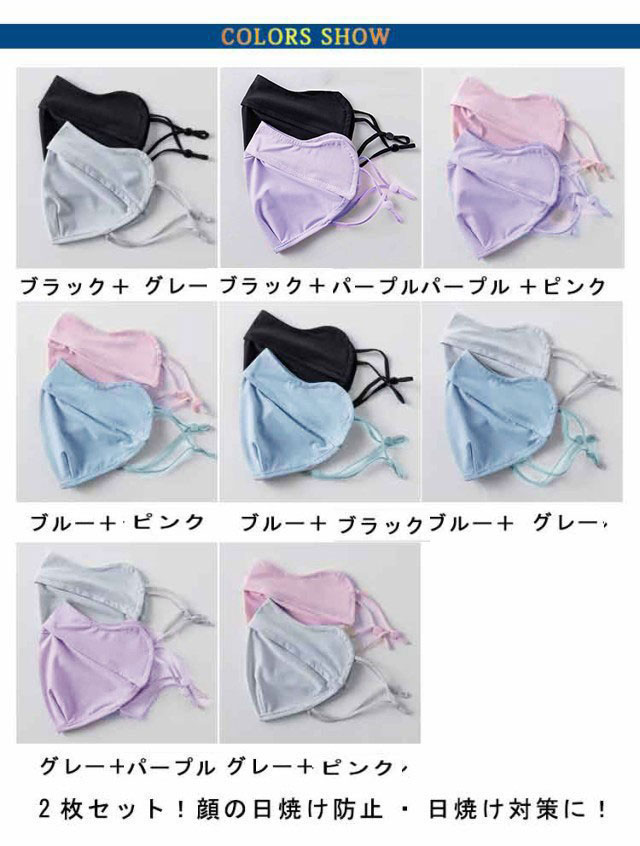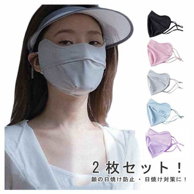 フェイスカバー UV uvカット レディース ランニング スポーツマスク おしゃれ 息苦しくない 薄手 2枚セット 小顔効果 日よけ 顔 日焼け防止 グッズ 紫外線対策グッズ テニス ジョギング 接触冷感 ひんやり お出かけ 夏用 無地 シンプル コンパクト 屋外 アウトドア 送料無料