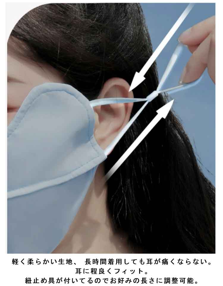 | 2枚セット!顔の日焼け防止?日焼け対策に! 呼吸用の開口部があり、スムーズに息を排出、新鮮な空気を新鮮な空気を取り込むことができます。 接触冷感素材を採用、快適なつけ心地? 軽く柔らかい生地、長時間着用しても耳が痛くならない。 耳に程良くフィット。紐止め具が付いてるのでお好みの長さに調整可能。 日差しの強い日も安心して出かけられます。お出かけ、アウトドアや作業用にもバッチリです。 シンプルのデザインはファッションを邪魔になりません。 | |