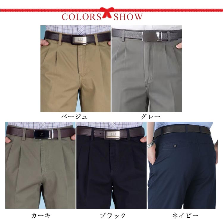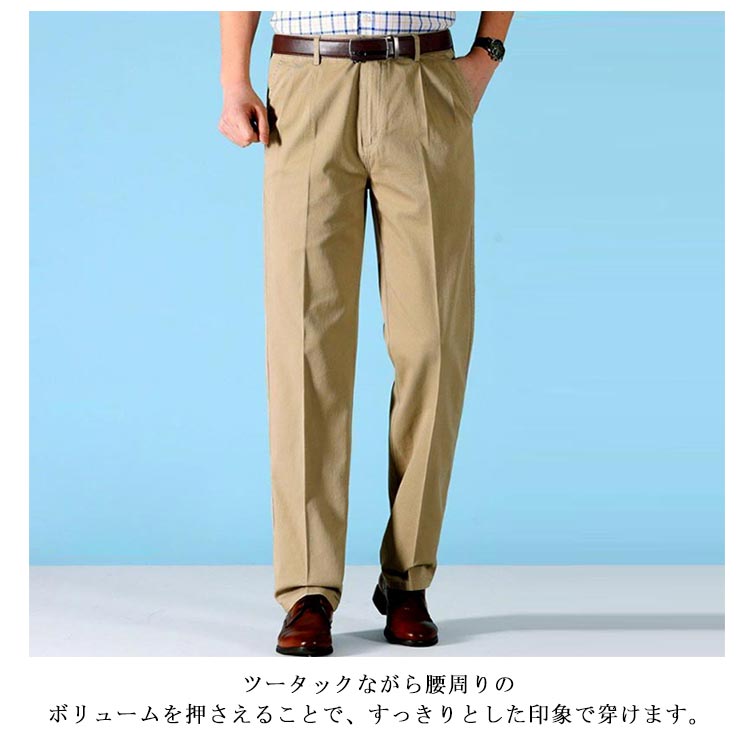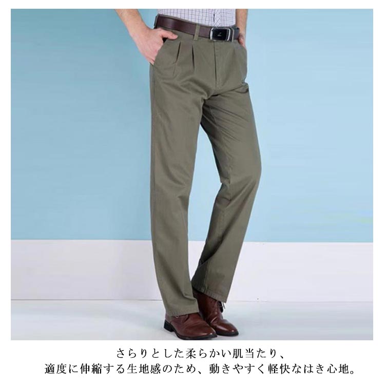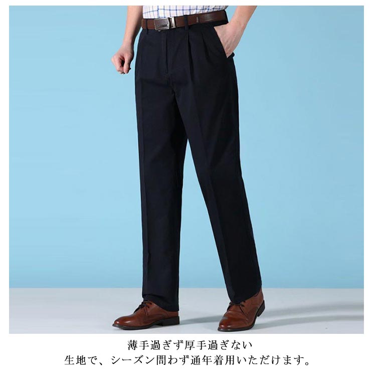 メンズ チノパンツ 夏 ストレートパンツ スラックス ツータック 薄手 ツイル生地 チノパン ワイドパンツ ゆったり 深め股上 綿 コットン 大きいサイズ ビジネス カジュアル パンツ ズボン 春夏 秋 黒 紺 ベージュ カーキ ネイビー