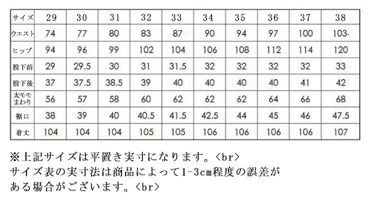 | サイズ | 29 30 31 32 33 34 35 36 38 40 |