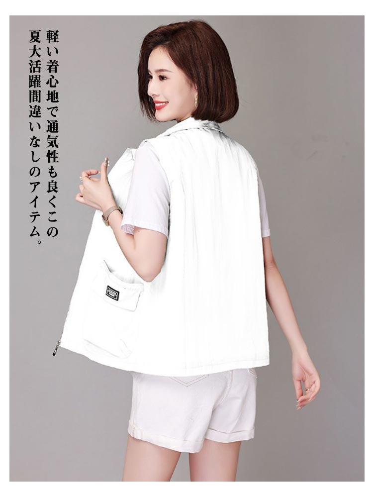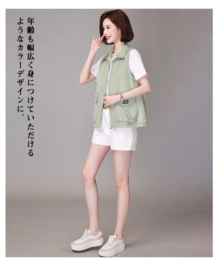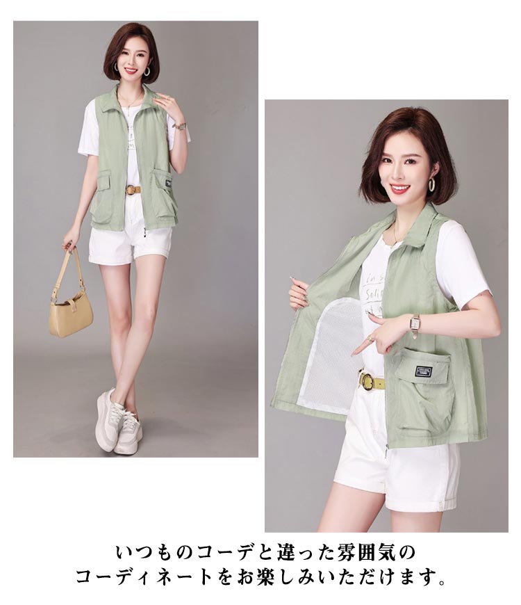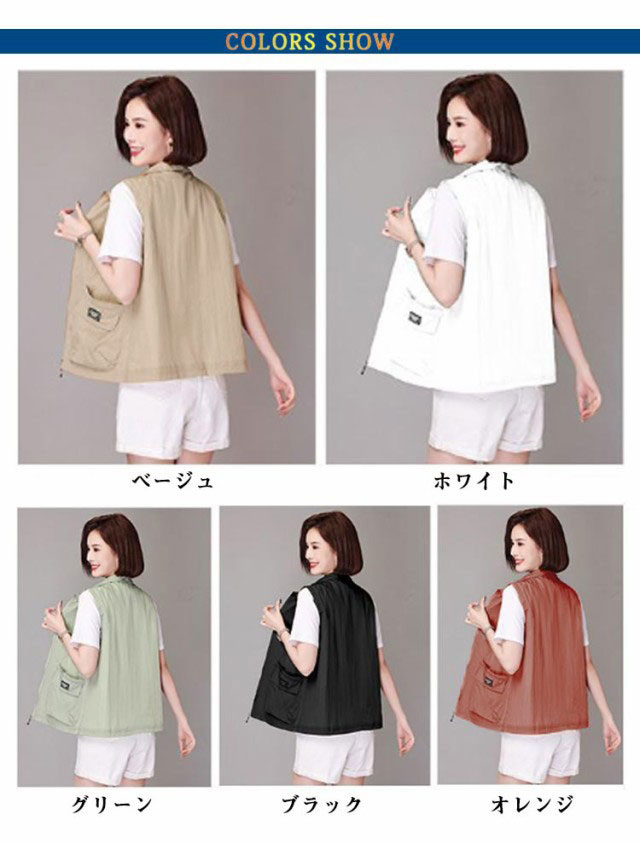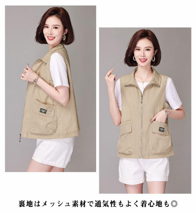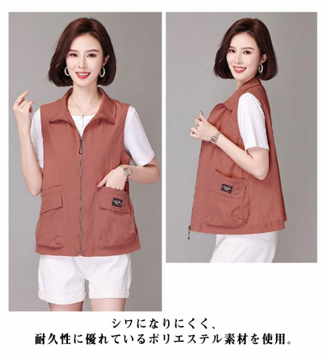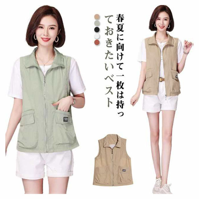 ベスト レディース スタンドカラー ジップアップ 前開きベスト ノースリーブ ジャケット 春夏 薄手 カジュアル ミリタリーベスト 裏メッシュ ポケット付き 大人 サマージャケット カジュアル アウトドア 無地 送料無料 大きいサイズ
