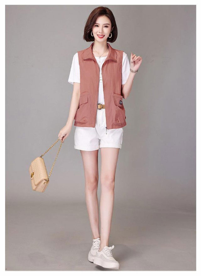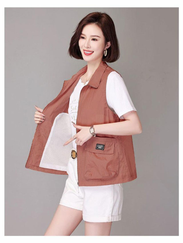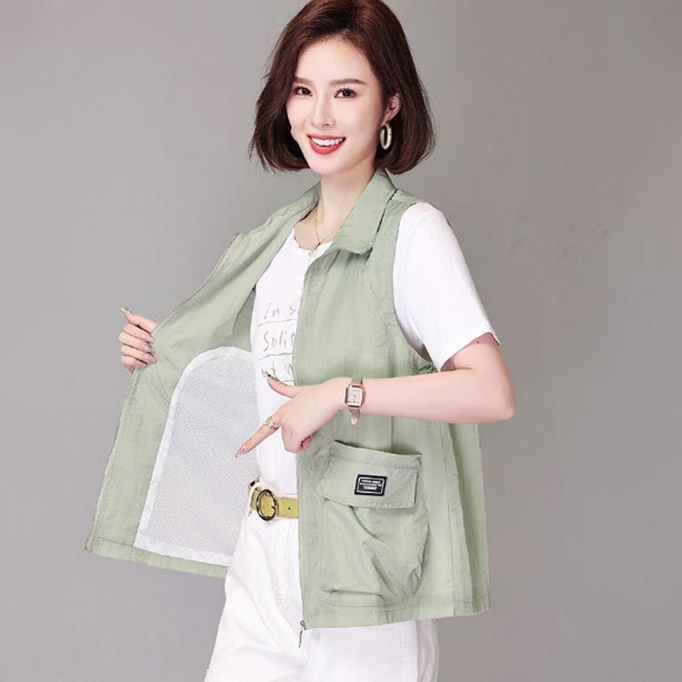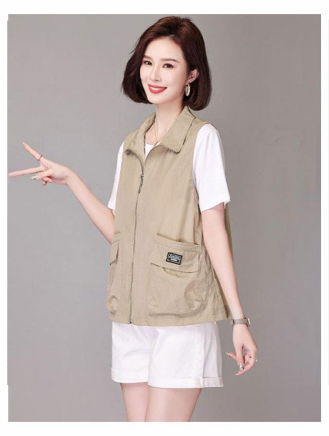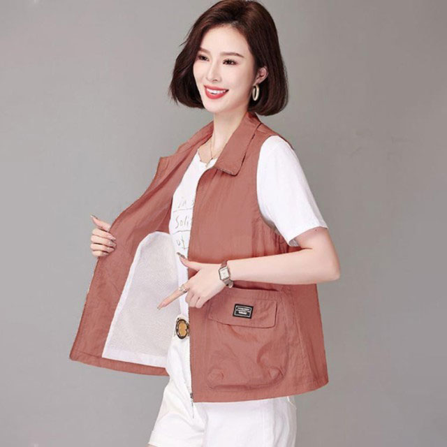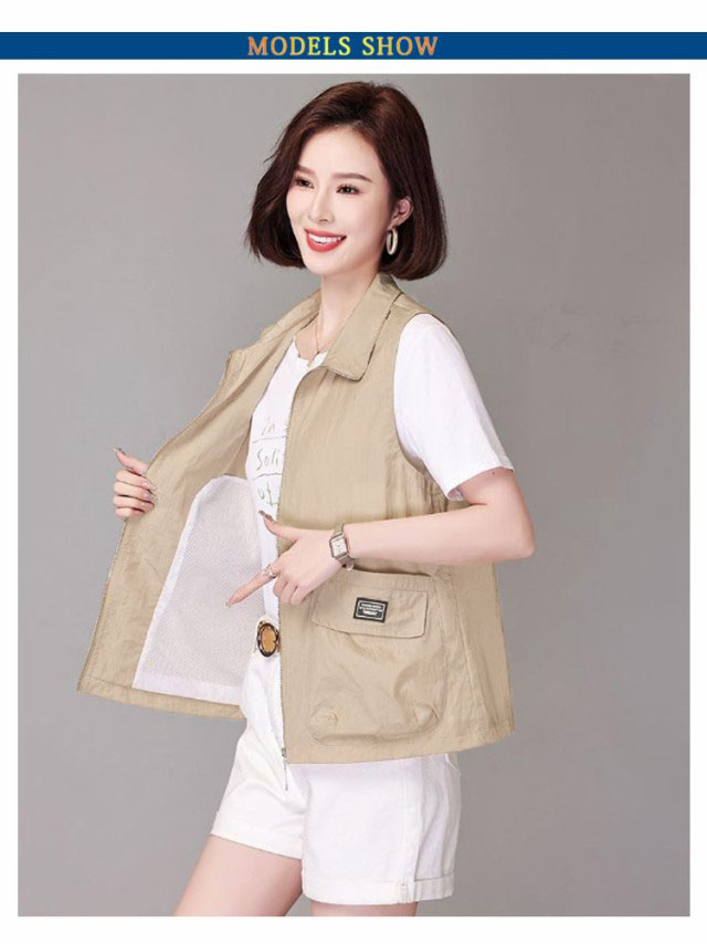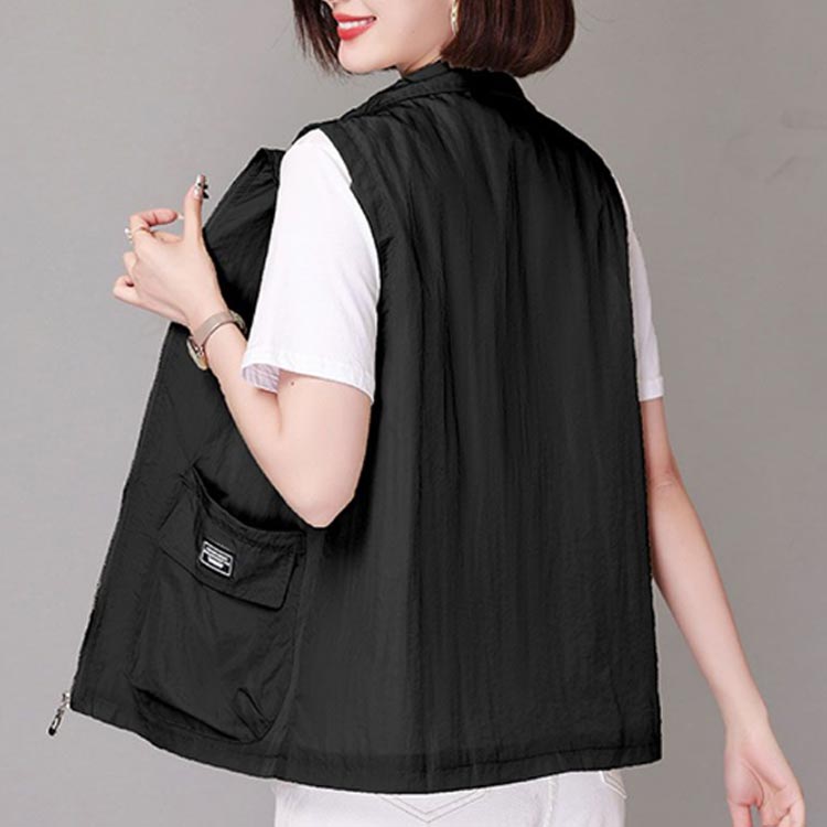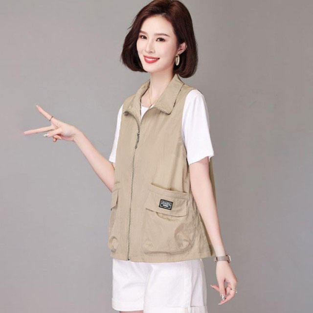 ベスト レディース スタンドカラー ジップアップ 前開きベスト ノースリーブ ジャケット 春夏 薄手 カジュアル ミリタリーベスト 裏メッシュ ポケット付き 大人 サマージャケット カジュアル アウトドア 無地 送料無料 大きいサイズ
