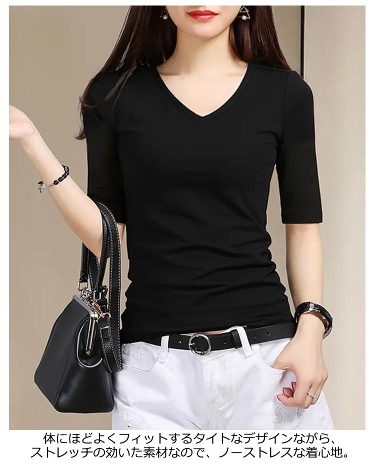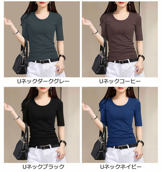 送料無料 春 夏 レディース Uネック 秋 カットソー レディース 春 きれいめ 五分袖 uネック 薄手 トップス モーダル 通気性 5分袖 無地 インナー シンプル 薄手 ストレッチ 吸湿性 Tシャツ