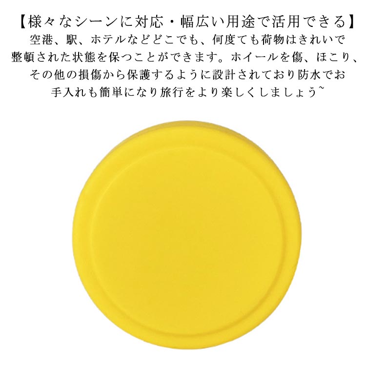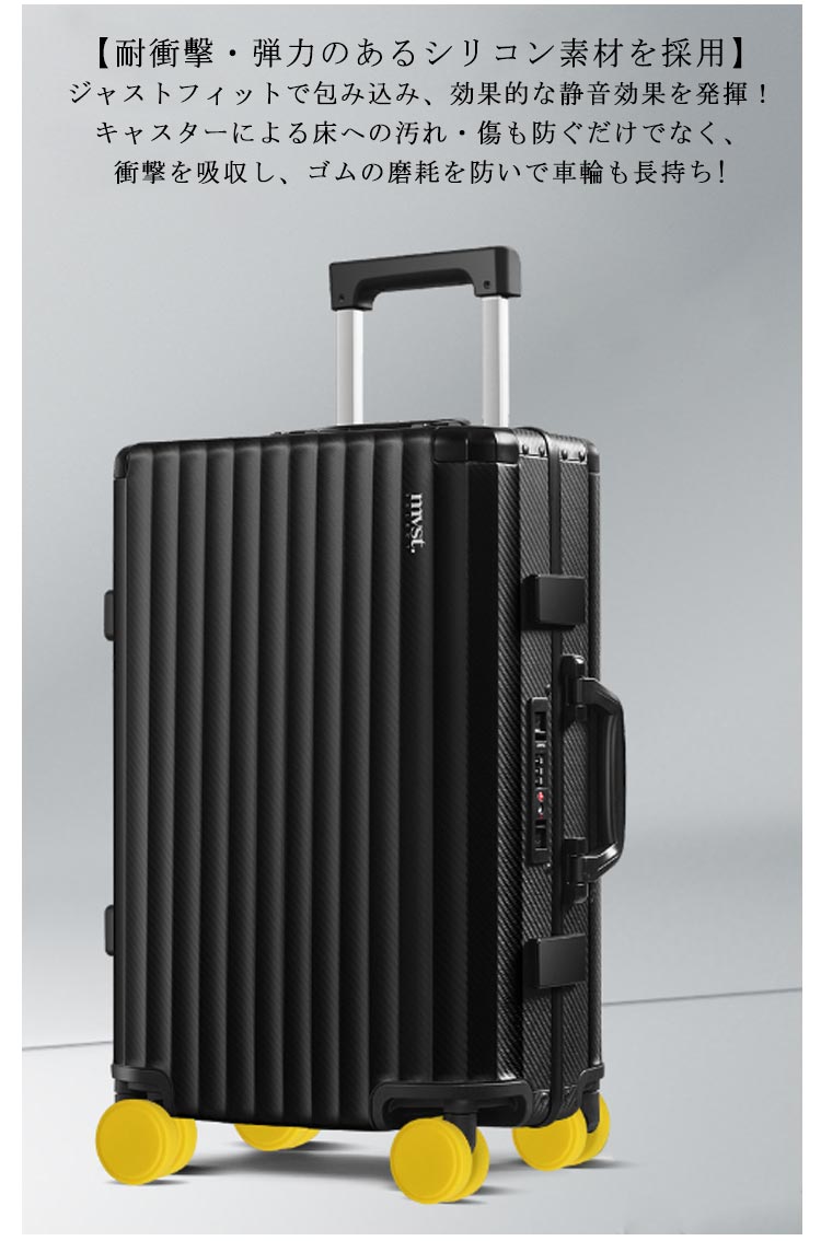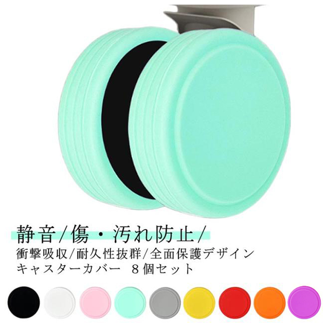 静音/傷・汚れ防止/衝撃吸収/耐久性抜群/全面保護デザインキャスターカバー 8個セット【耐衝擊・弾力のあるシリコン素材を採用】ジャストフィットで包み込み、効果的な静音効果を発揮!キャスターによる床への汚れ・傷も防ぐだけでなく、衝撃を吸収し、ゴムの磨耗を防いで車輪も長持ち!【騒音が抑えられ・ノンストレス】滑り止め・床を保護する役割を果たし、車輪が床を傷つけずに騒音を軽減します。ホイールの摩擦と振動を軽減し粗い路面での転がりによって引き起こされる騒音を低減。【全面保護】完全包囲されたデザイン、より汚れに強く、効果的な保護!【空港でも大活躍】明るい色を選べば、ターンテーブルですぐに自分のキャリーバッグを見つけられます。【簡単装着!】優れた延展性、簡単に着脱可能!女性一人でも数秒で簡単に取り付け可能です!※外れないようにタイヤにしっかりと装着させてください。【水洗いできる!】使用後キャリーから外して丸洗い可能!部屋や床を汚さずにキャリーケースを収納できる!【様々なシーンに対応・幅広い用途で活用できる】空港、駅、ホテルなどどこでも、何度ても荷物はきれいで整頓された状態を保つことができます。ホイールを傷、ほこり、その他の損傷から保護するように設計されており防水でお手入れも簡単になり旅行をより楽しくしましょう~