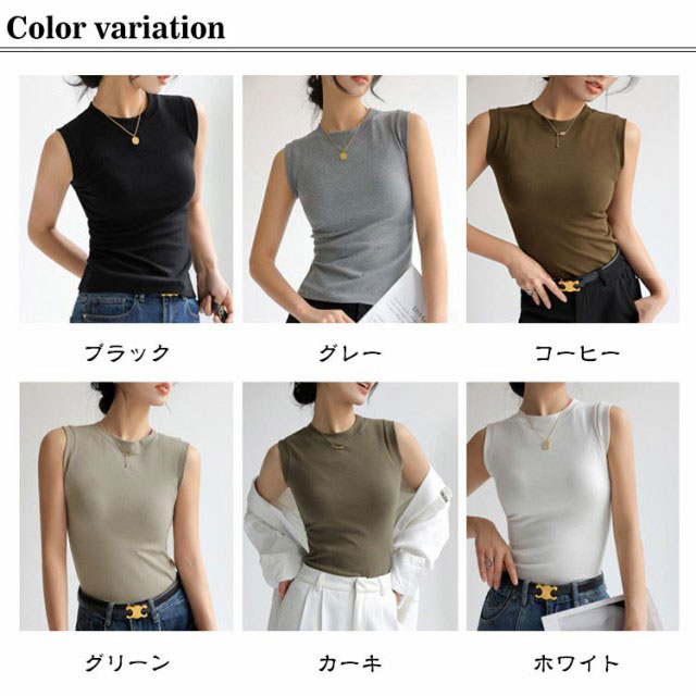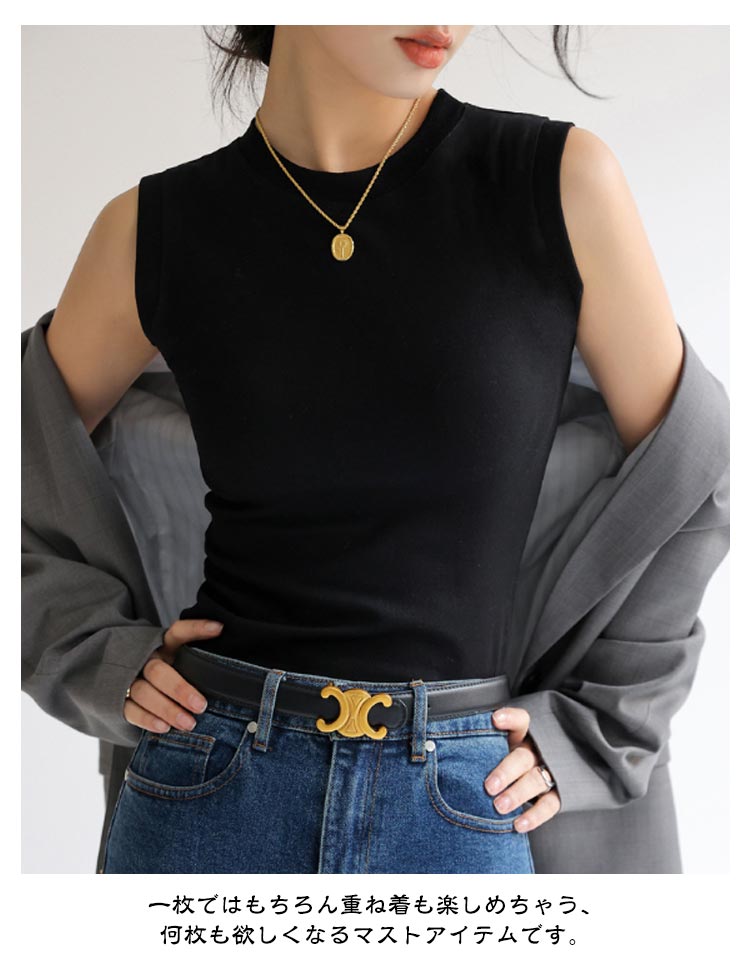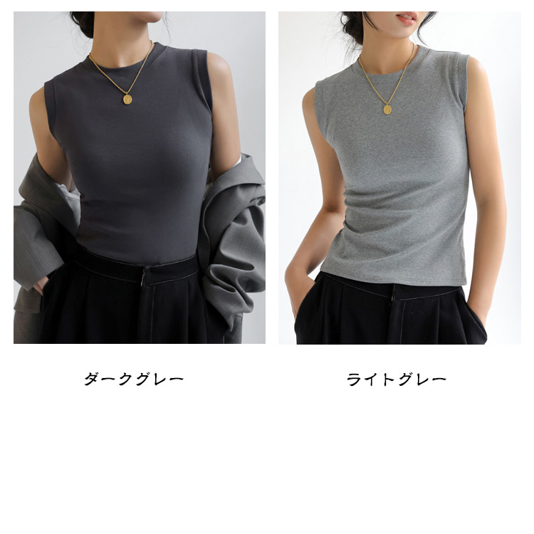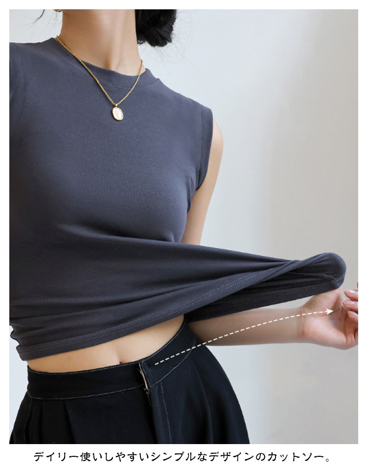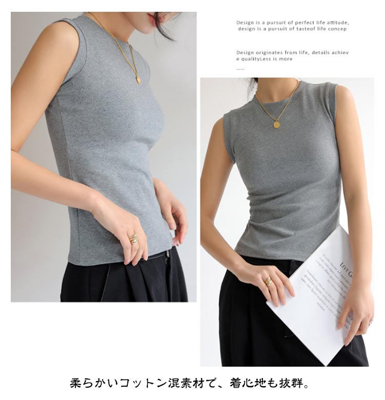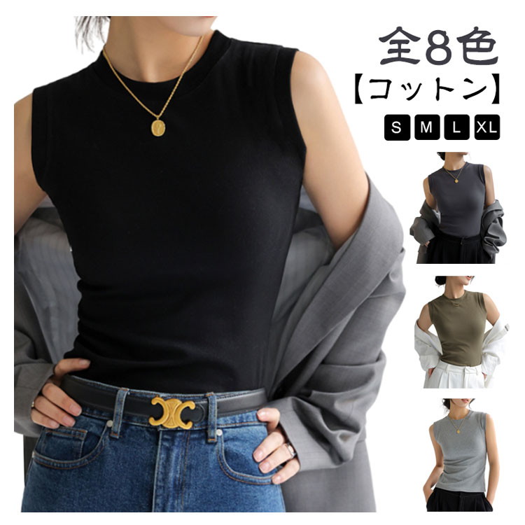 ノースリーブ トップス 綿 レディース カットソー Tシャツ インナー 丸首 クルーネック 重ね着 綿混 無地 春夏 タンクトップ フィット サマー 白 黒 大きいサイズ シンプル 着まわし レイヤード 柔らか コットン ストレッチ