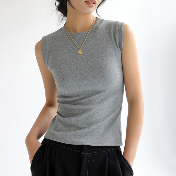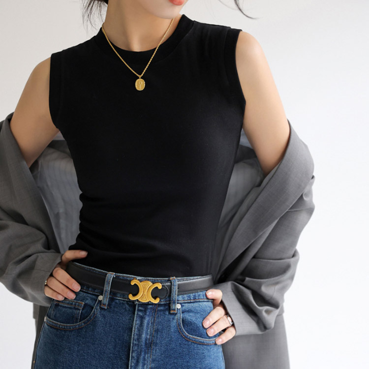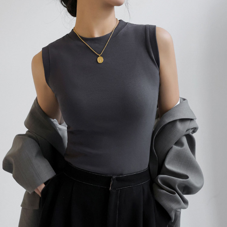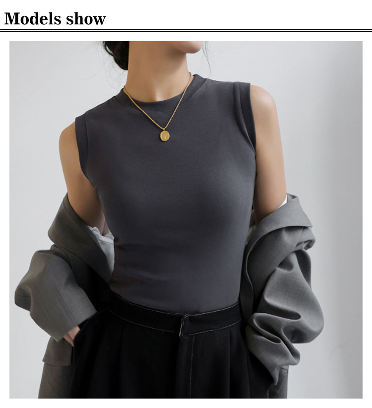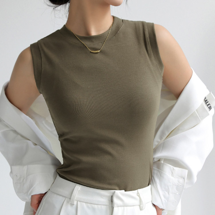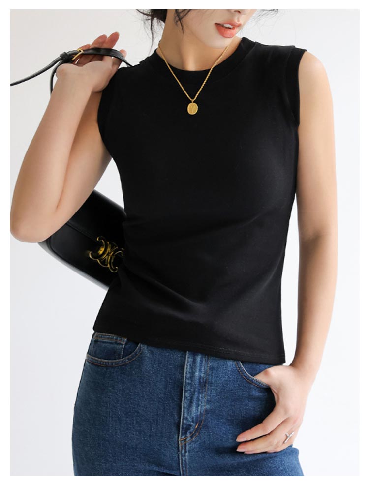 ノースリーブ トップス 綿 レディース カットソー Tシャツ インナー 丸首 クルーネック 重ね着 綿混 無地 春夏 タンクトップ フィット サマー 白 黒 大きいサイズ シンプル 着まわし レイヤード 柔らか コットン ストレッチ