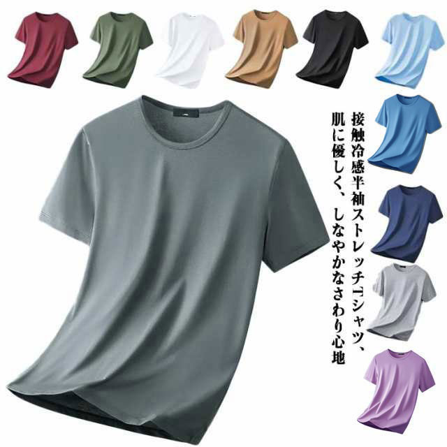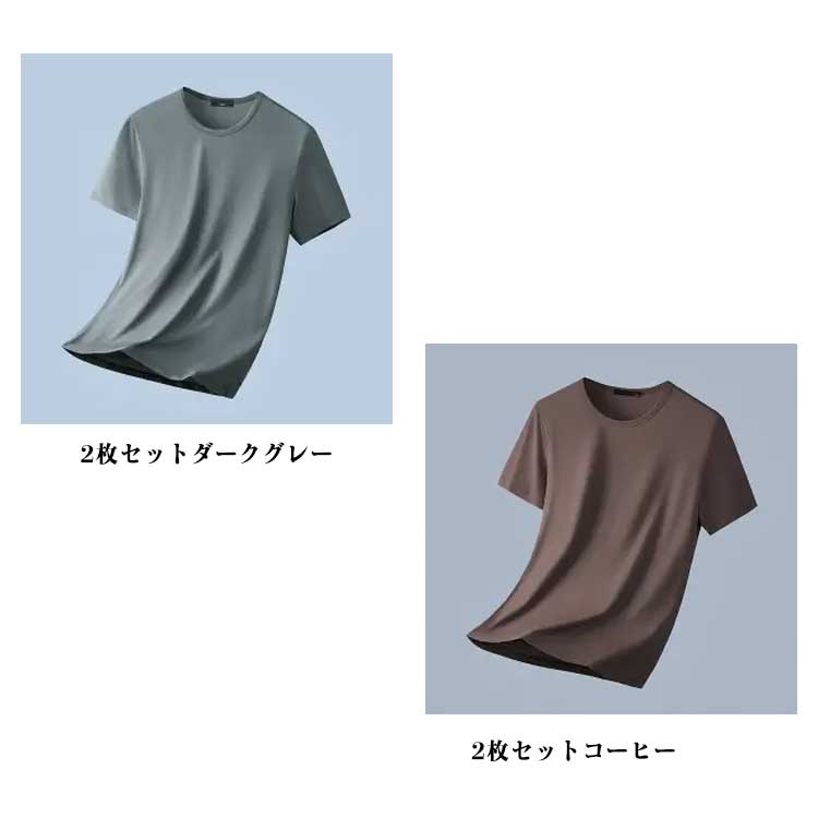 【2枚セット】 メンズ 接触冷感 半袖Tシャツ 肌着 速乾 接触冷感 ストレッチ クルーネック 防臭 爽やか 冷感 伸縮性 吸汗性 抗菌 ひんやり 無地 通気性 薄手 インナー カットソー 半袖 トップス トップス 夏物 スポーツ アウトドア Tシャツ