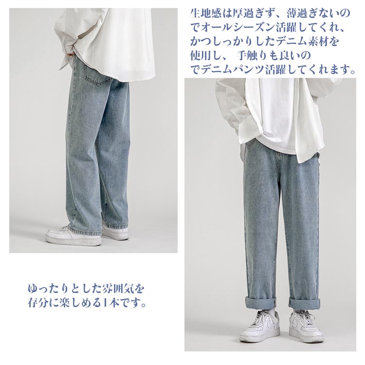 デニムパンツ メンズ ワイドパンツ ジーパン ジーンズ ゆったり バギー パンツ ストレート レギュラー ボトムス カジュアル ズボン 春 夏 秋 冬 S-3XL 大きいサイズ 送料無料