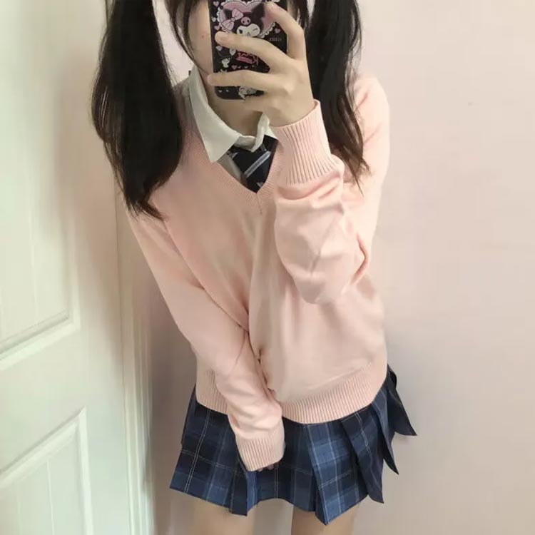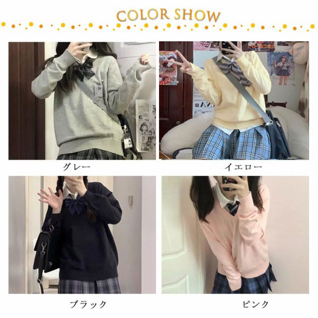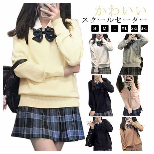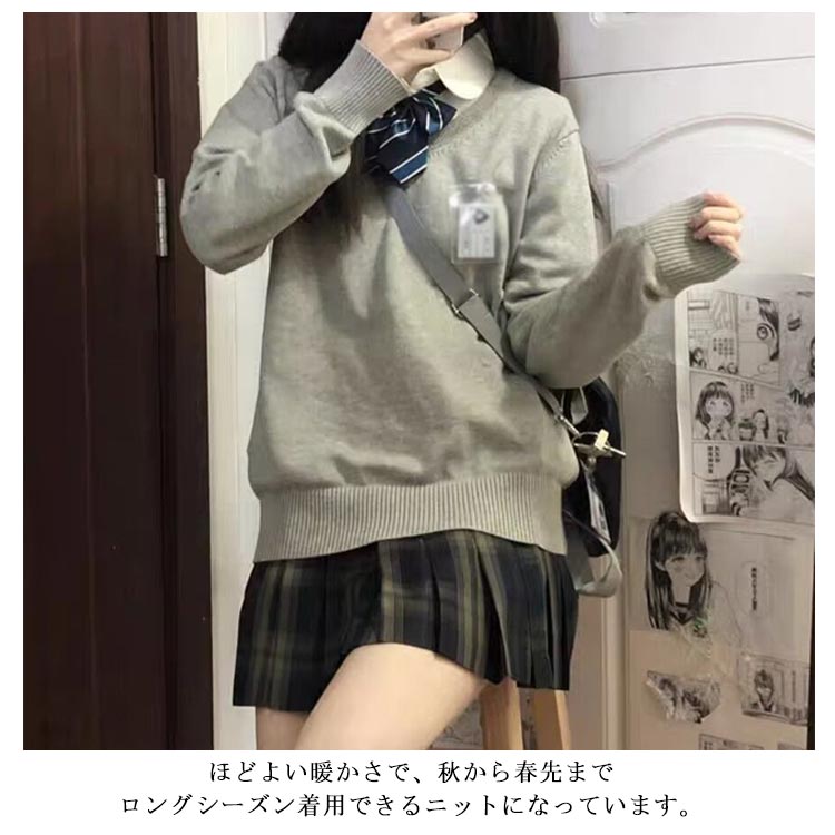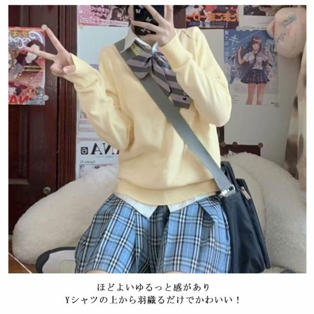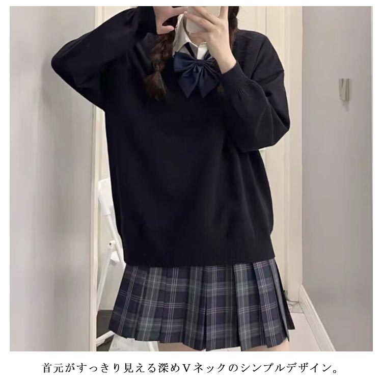 スクールセーター 学生 女子 高校生 ハイゲージ ニット セーター ゆったり 長袖 ニットトップス vネック 薄手 無地 シンプル アクリル ニット プルオーバー かわいい 学校 JK 制服 学生服 通学 秋 冬 レディース 長袖トップス 【送料無料】