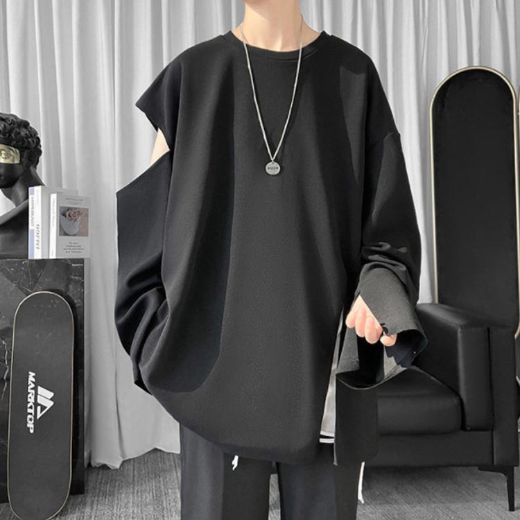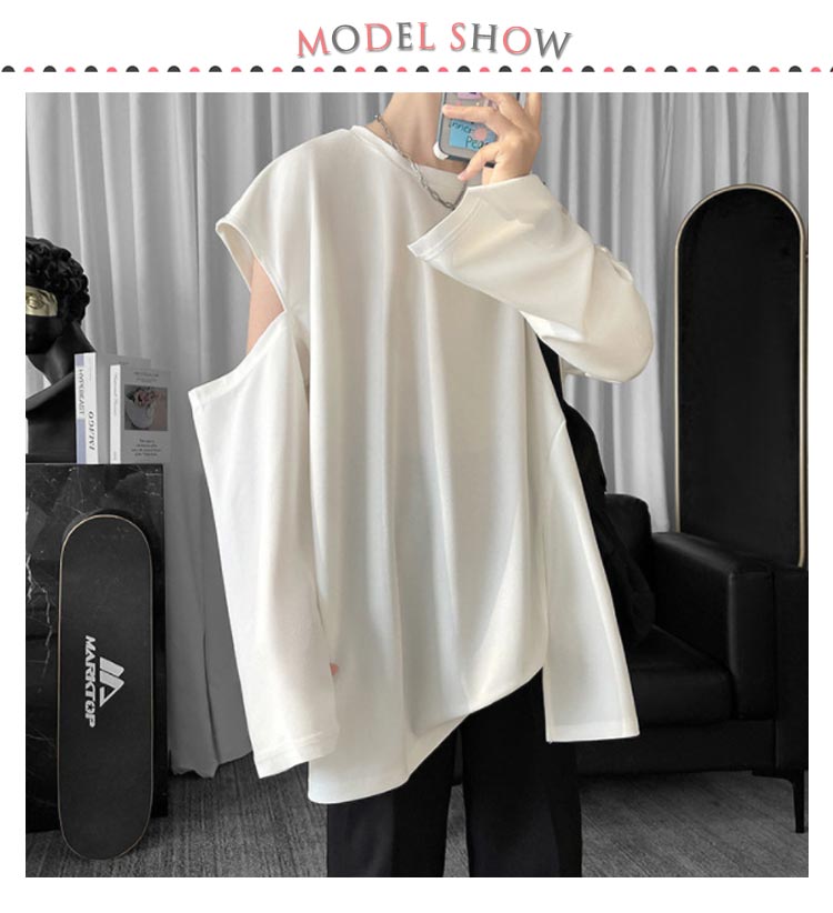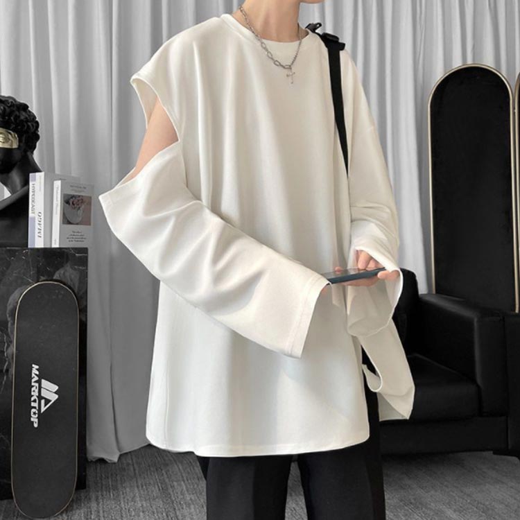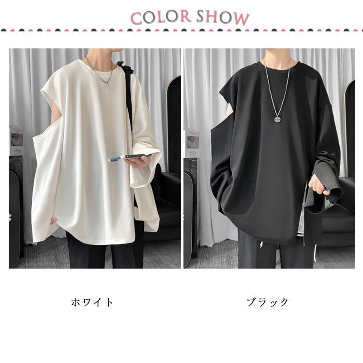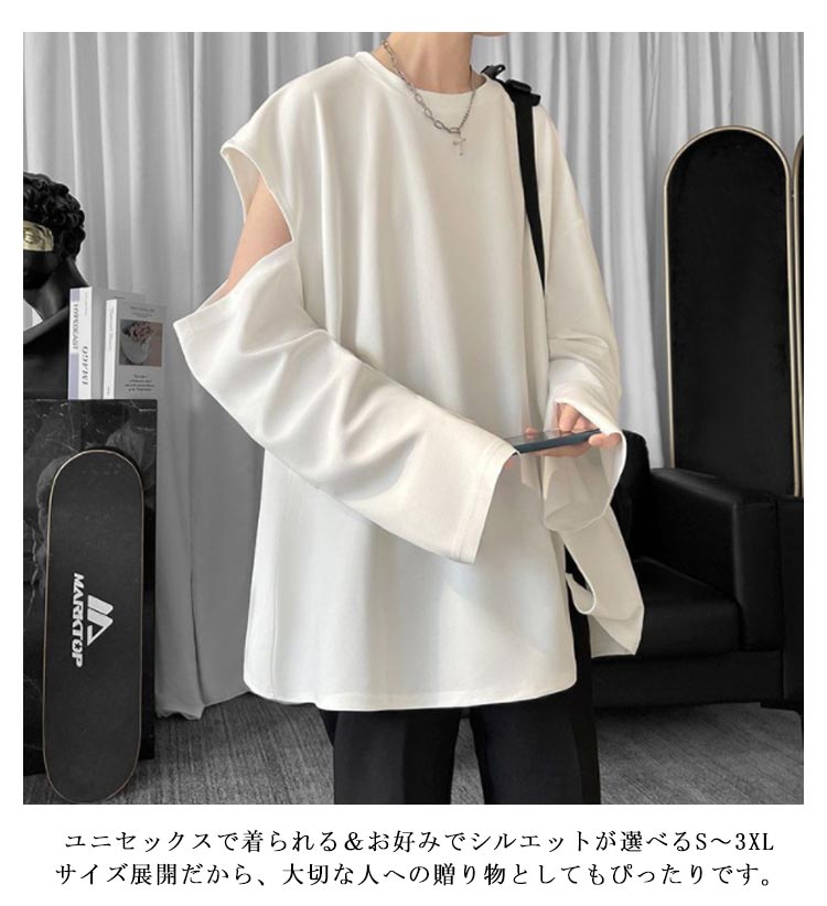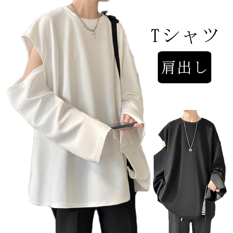 トレーナー 肩出し トップス 肩開き プルオーバー メンズ 春 秋 長袖 カットソー スウェット Tシャツ 大きいサイズ 無地 長袖プルオーバー オフショルダー 肩見せ 肌見せ 個性的 オーバーサイズ 白 黒 カジュアル 送料無料