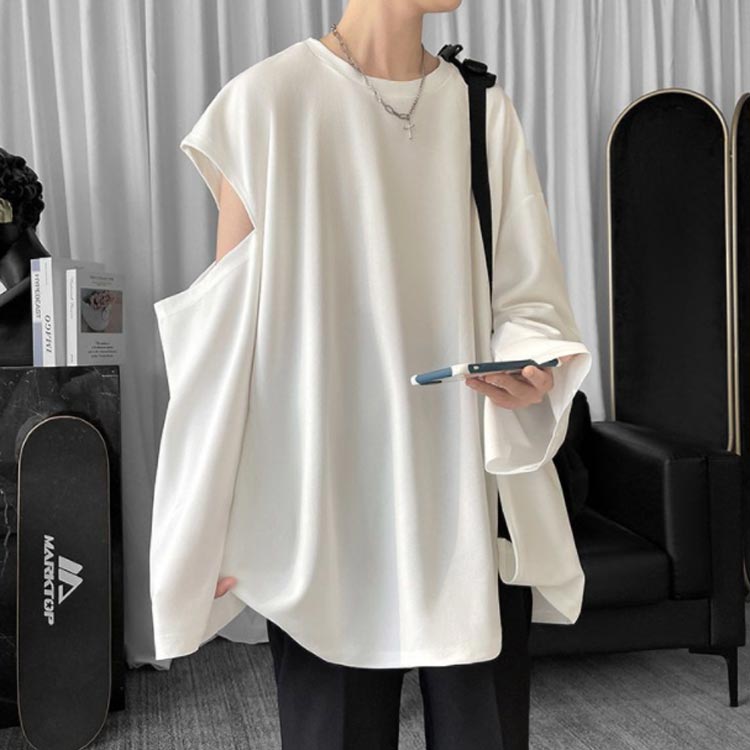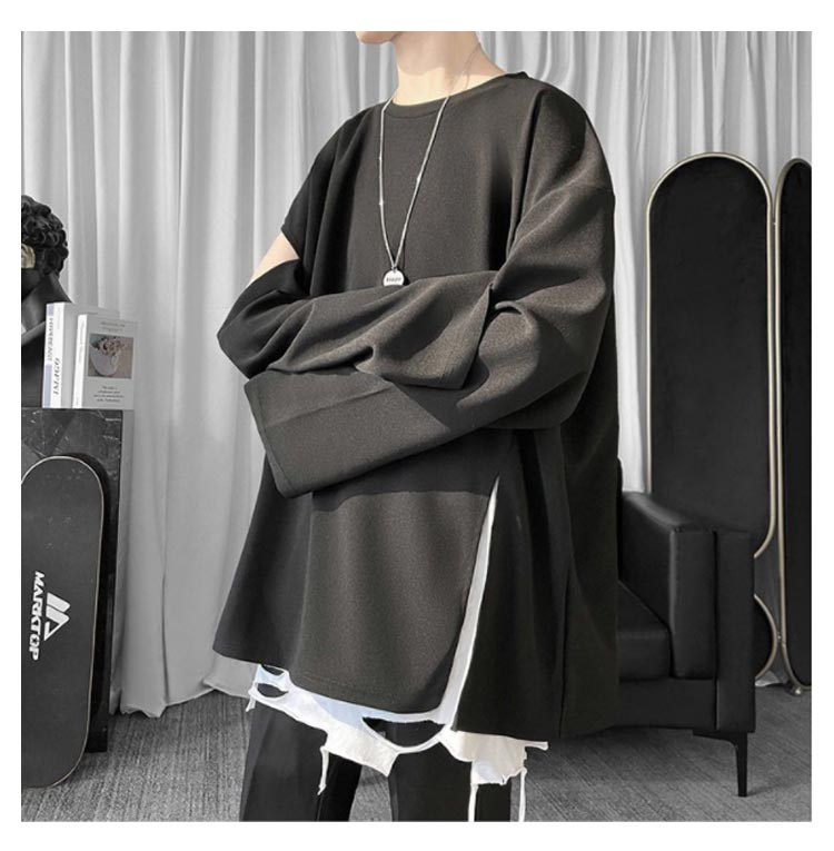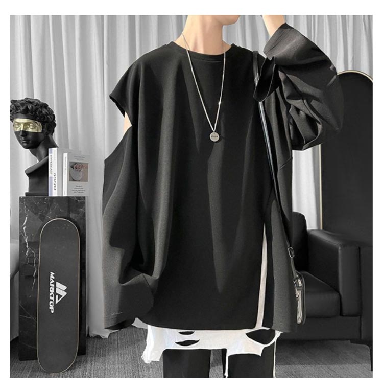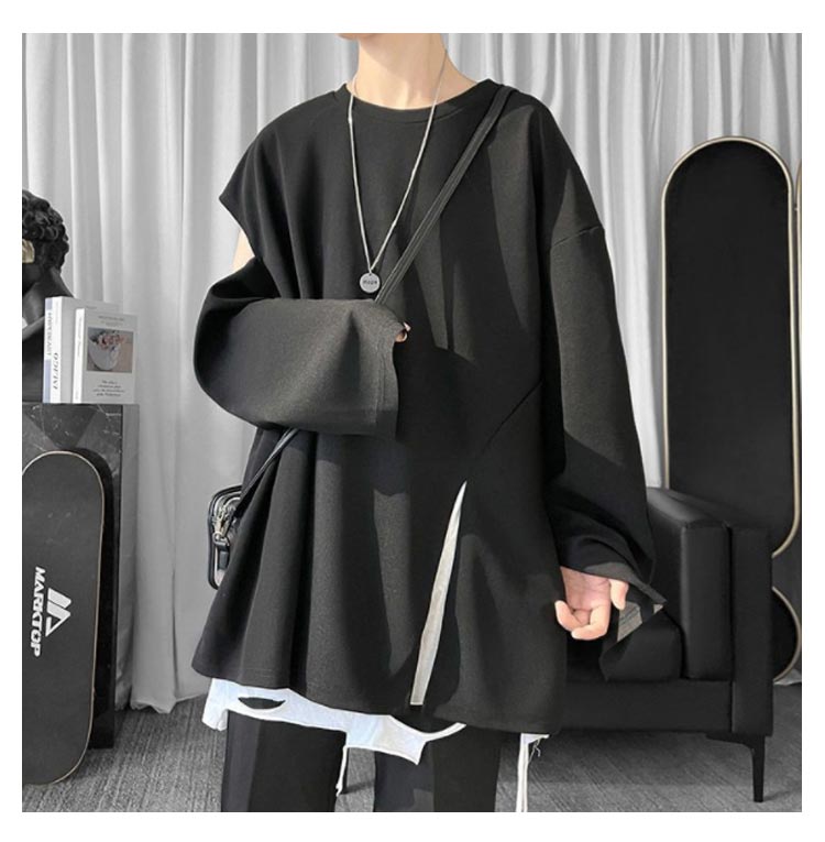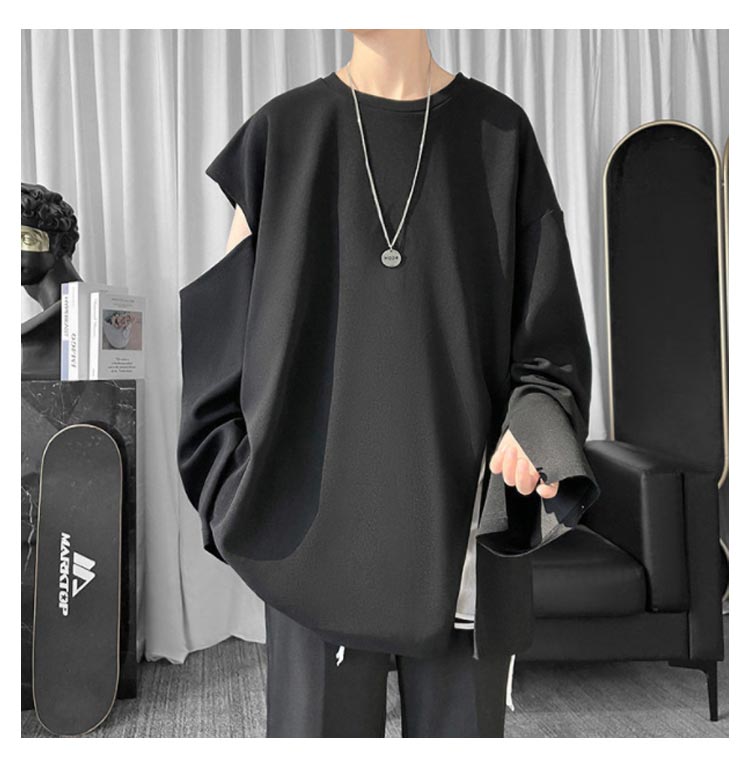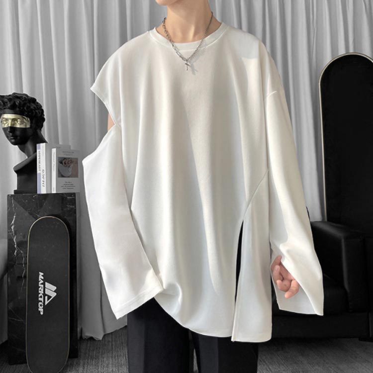 トレーナー 肩出し トップス 肩開き プルオーバー メンズ 春 秋 長袖 カットソー スウェット Tシャツ 大きいサイズ 無地 長袖プルオーバー オフショルダー 肩見せ 肌見せ 個性的 オーバーサイズ 白 黒 カジュアル 送料無料