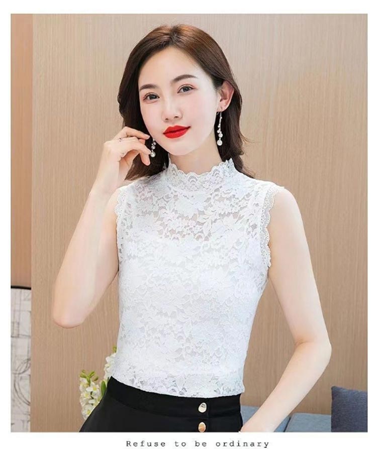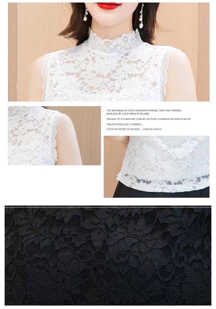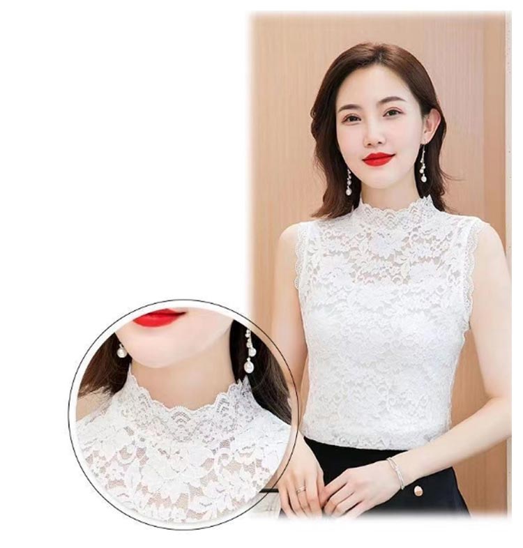 華やかなレースのハイネックトップスです。 繊細なレース刺繍で首元をおしゃれに隠せる透け感のあるトップス。洗練デザインで、大人っぽい柄なのできれいめにもカジュアルにもマッチ。伸縮性のある生地なので、ストレスなくボディーに優しくフィット◎透け感があるので、お手持ちのキャミなどと合わせて重ね着コーデを楽しんでください。袖なしのシアー素材で、夏は涼しく、冬はかさばらないからオールシーズンレイヤードスタイルを楽しめます。ニット等のインナーとしてレースをチラ見せしてもカワイイ♪