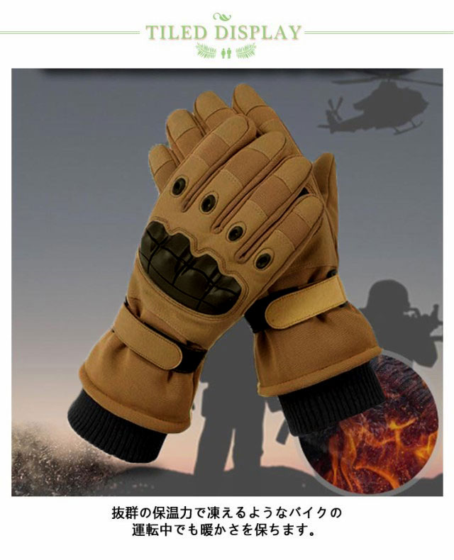 | 真冬にピッタリな厚手のグローブ! 抜群の保温力で凍えるようなバイクの運転中でも暖かさを保ちます。 手首までしっかり覆う作りで、マジックテープで固定する事で雨風の侵入も防ぐことができます。 立体成型で握りやすさを確保しながらもしっかり手の甲を保護してくれるプロテクターを配置! スマートフォン操作も可能で便利。 バイクだけでなく、マウンテンバイクや作業時などにも活躍してくれます。 | |