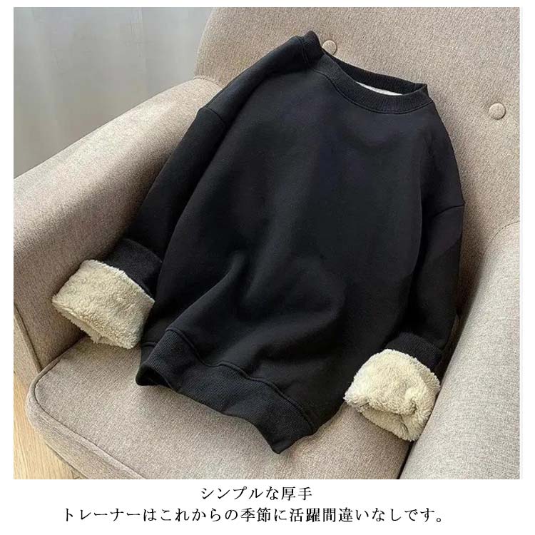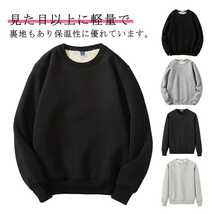スウェットプルオーバー トレーナー クルーネック 厚手 裏起毛 あったか レディース メンズ トップス 無地 長袖 パーカー カジュアル ゆったり 春 秋冬 裏ボア 送料無料