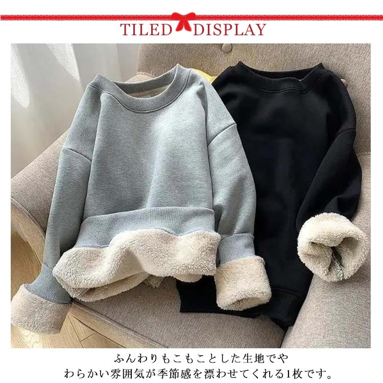 見た目以上に軽量で裏地もあり保温性に優れています。ふんわりもこもことした生地でやわらかい雰囲気が季節感を漂わせてくれる1枚です。女性らしい魅力と可愛さを演出でき、かわいくてあったかい。シンプルな厚手トレーナーはこれからの季節に活躍間違いなしです。カジュアルなデイリーユースから、ビジネス、オフィス、通勤、通学にも~