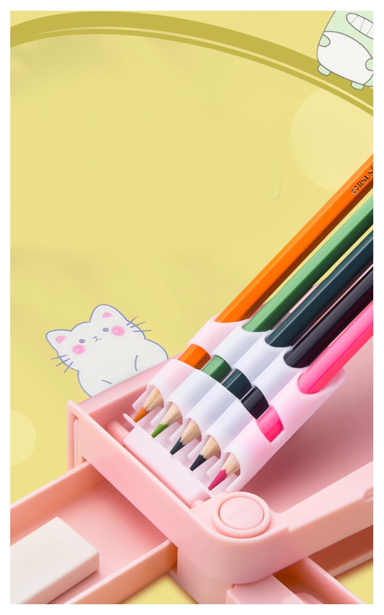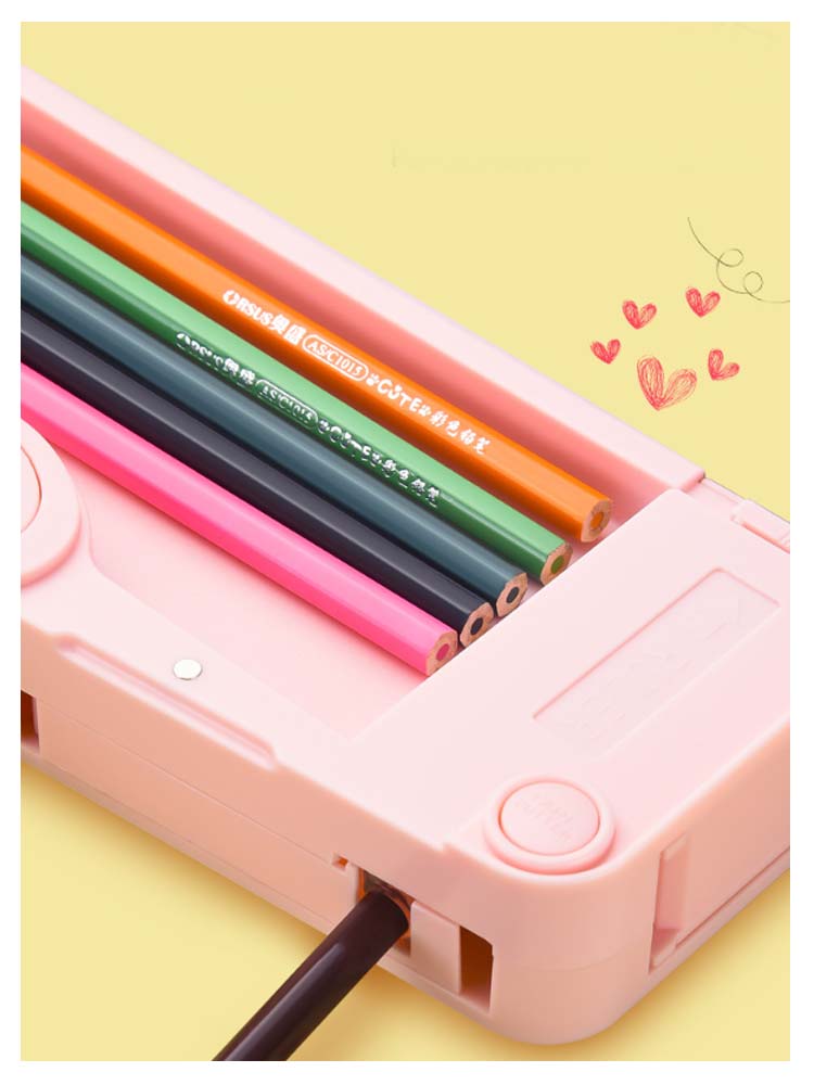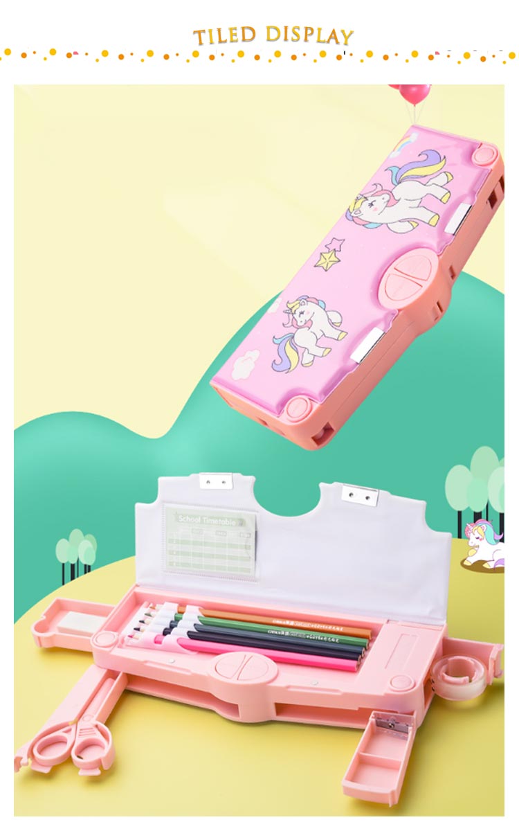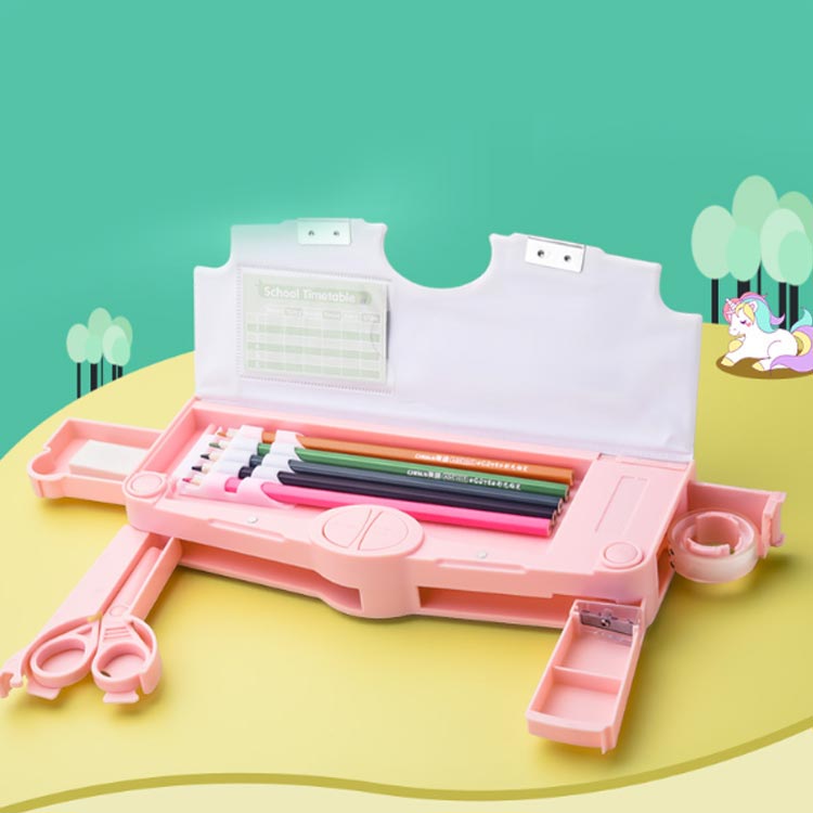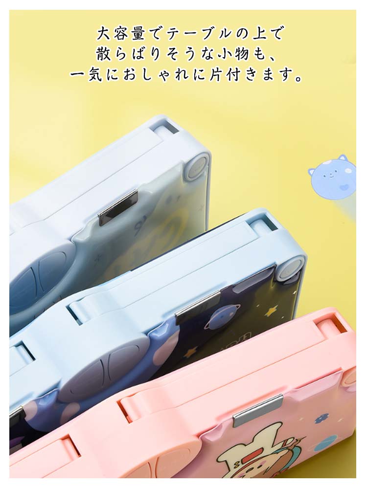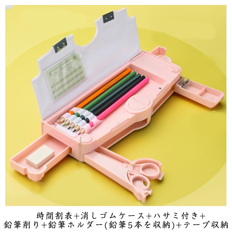 | 機能性はバッチリなので大活躍間違いなし。ペンケース。 時間割表+消しゴムケース+ハサミ付き+鉛筆削り+鉛筆ホルダー(鉛筆5本を収納)+テープ収納! 大容量でテーブルの上で散らばりそうな小物も、一気におしゃれに片付きます。 文房具が一目瞭然で、分かりやすく使いやすい! | |