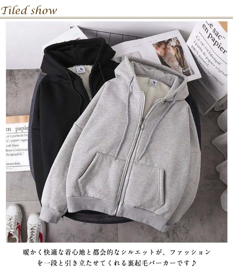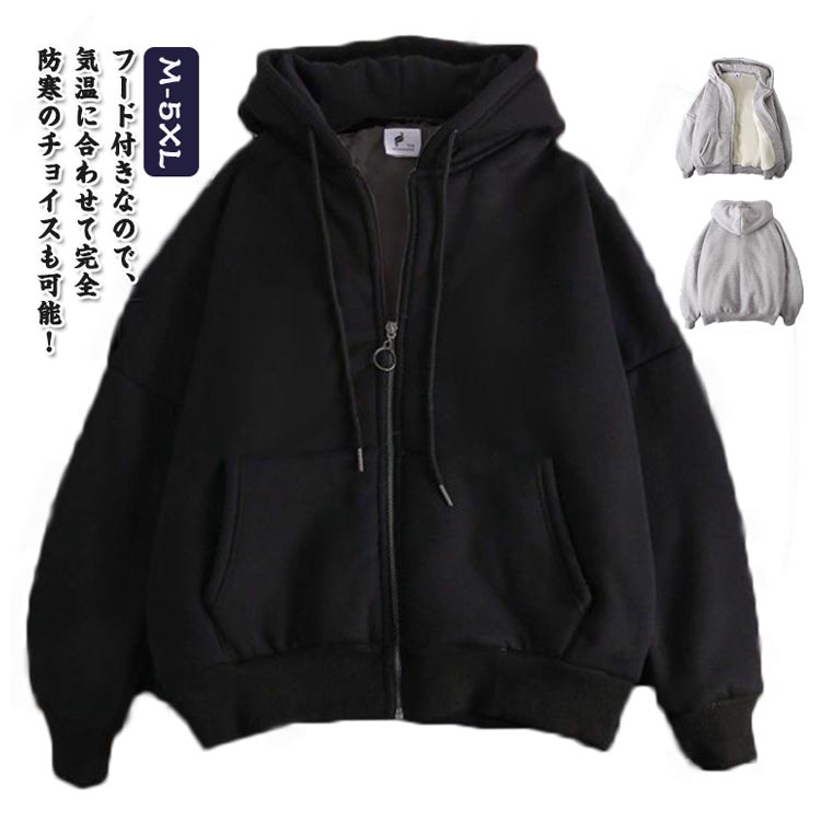メンズ レディース 無地 厚手 トレーナー ジップアップ プルオーバー 裏ボア 裏フリース ゆったり おしゃれ 裏起毛 パーカー 大きいサイズ ブラック アウター スウェット グレー 黒