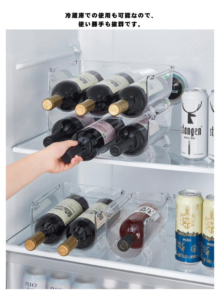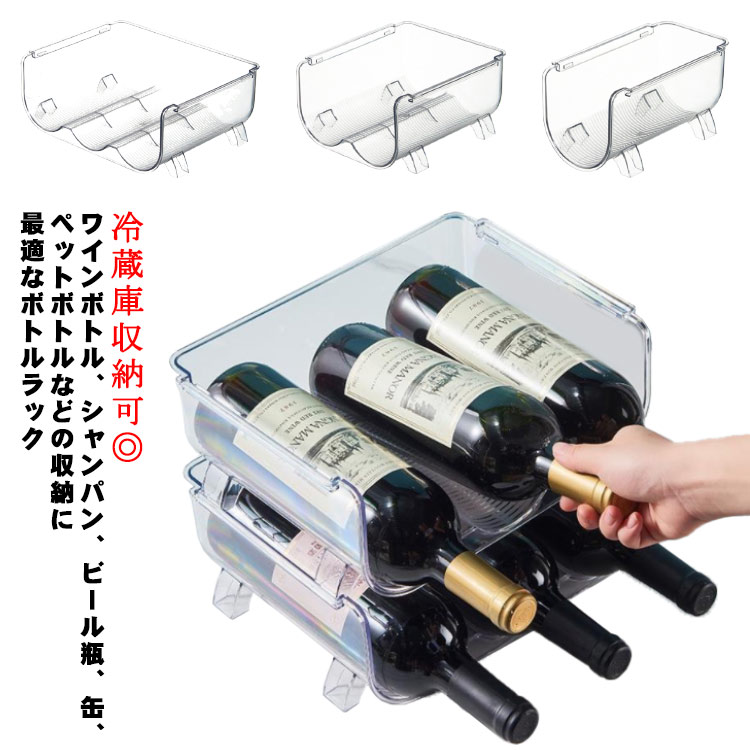 冷蔵庫 ビール ワインラック 収納ケース 缶 ペットボトル ラック 冷蔵庫内 収納 重ね置き 缶ストッカー ワインホルダー ドリンクホルダー ペットボトルホルダー ボトルホルダー 冷蔵庫収納 クリア 透明【送料無料】