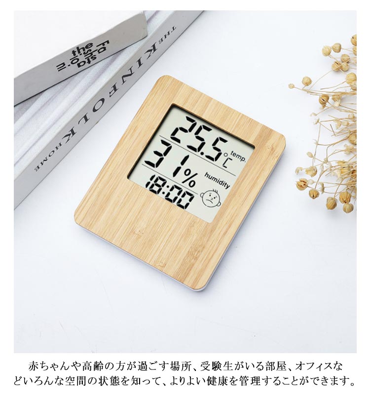 湿度計 温度計 温湿度計 温湿計 温度湿度計 木製 LEDデジタル 時計 置き掛け兼用 コンパクト 見やすい 小型 竹製 送料無料 温度計 温湿度計 湿度計 おしゃれ ミニ インテリア 時計 健康管理 乾燥対策 赤ちゃん健康管理 温湿度管理 体調管理