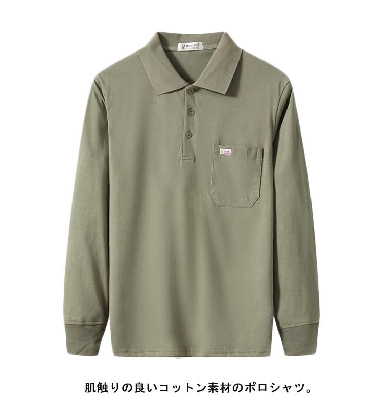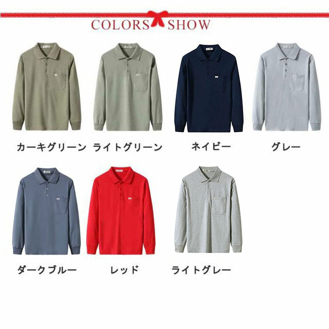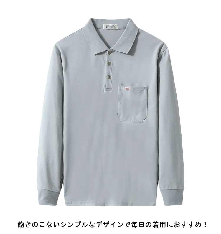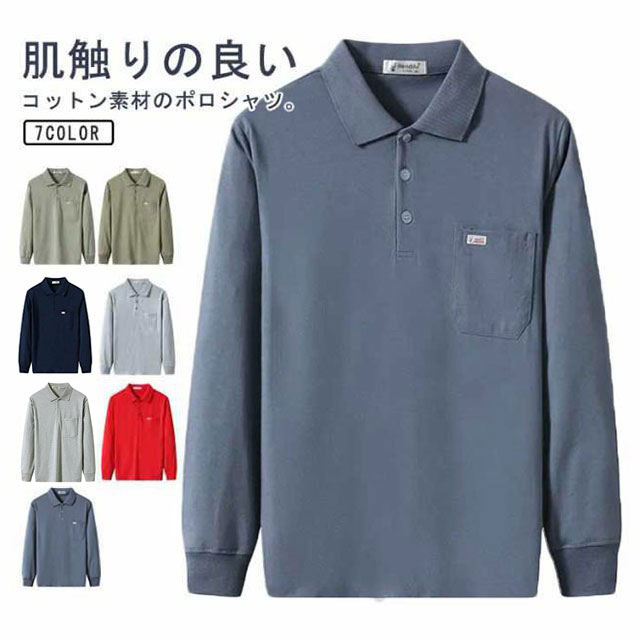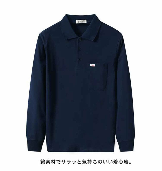 ポロシャツ メンズ 長袖 綿 コットン トップス 春 秋 ゴルフウェア シンプル 無地 胸ポケット付き おしゃれ カジュアル 大きいサイズ 大人 スポーツ 紳士 男性用 通学 通勤 お揃い 通気性