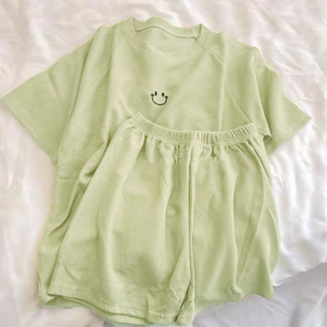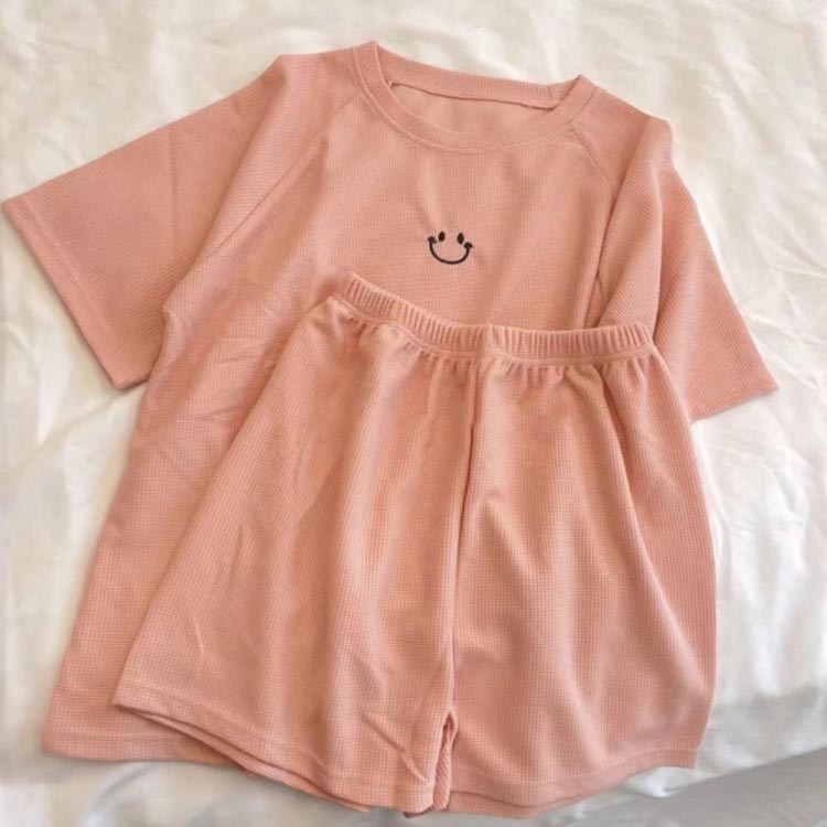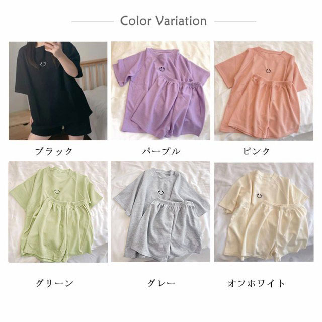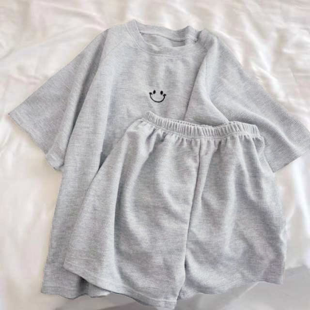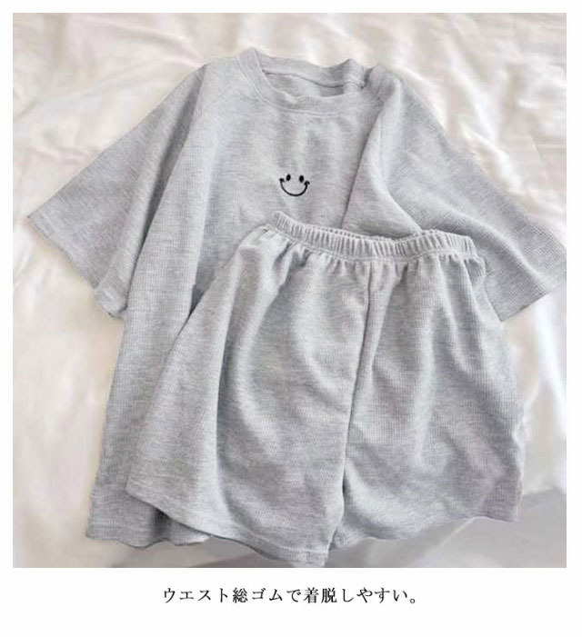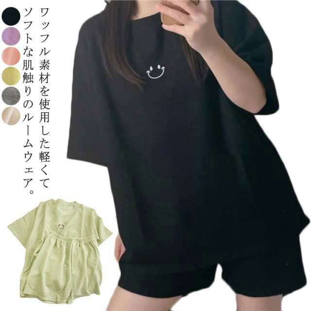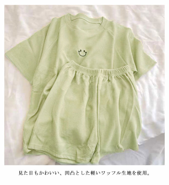 ルームウェア ワッフル 上下セット レディース セットアップ パジャマ 刺繍 夏用 Tシャツ 半袖 ショートパンツ 薄手 ワッフル生地 ナイトウェア 部屋着 半ズボン 2点セット 寝間着 リラックスウェア ゆったり かわいい ウエストゴム 大きいサイズ 女性 春 夏 送料無料