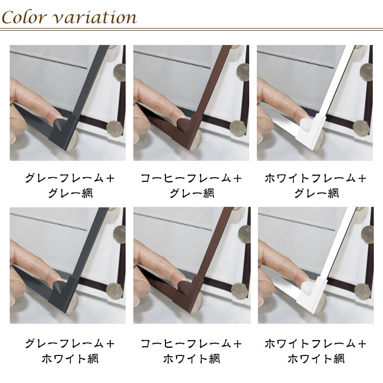 | 色 | グレーフレーム+グレー網 コーヒーフレーム+グレー網 ホワイトフレーム+グレー網 グレーフレーム+ホワイト網 コーヒーフレーム+ホワイト網 ホワイトフレーム+ホワイト網 |