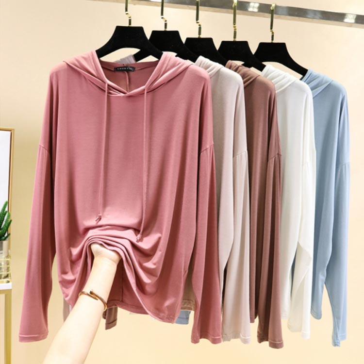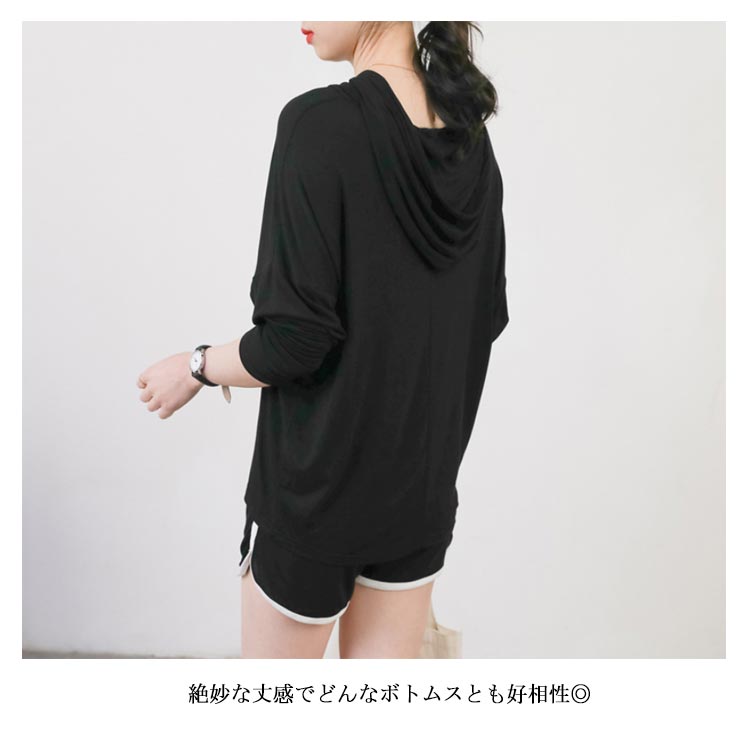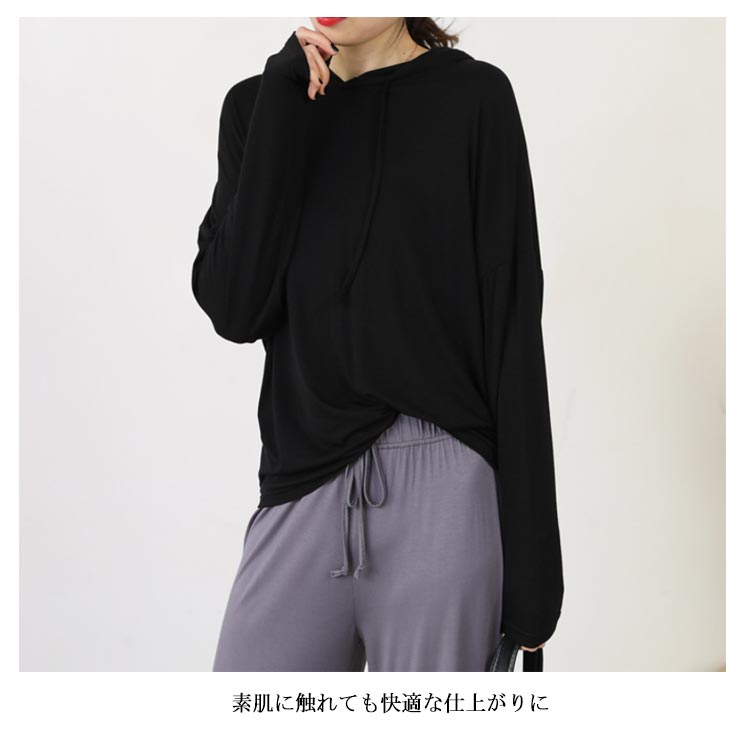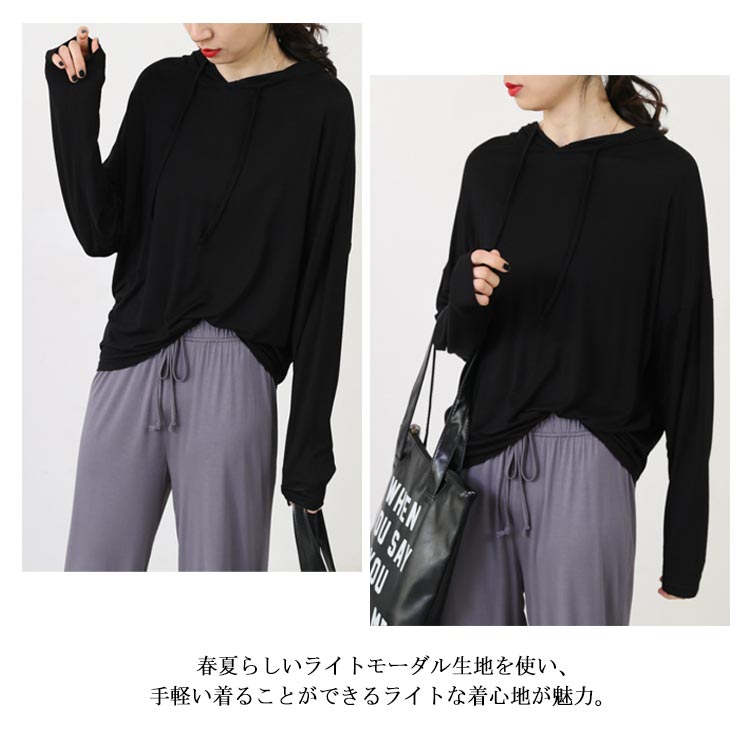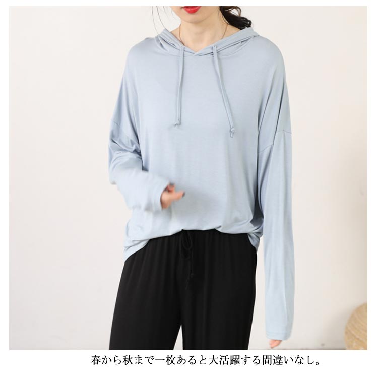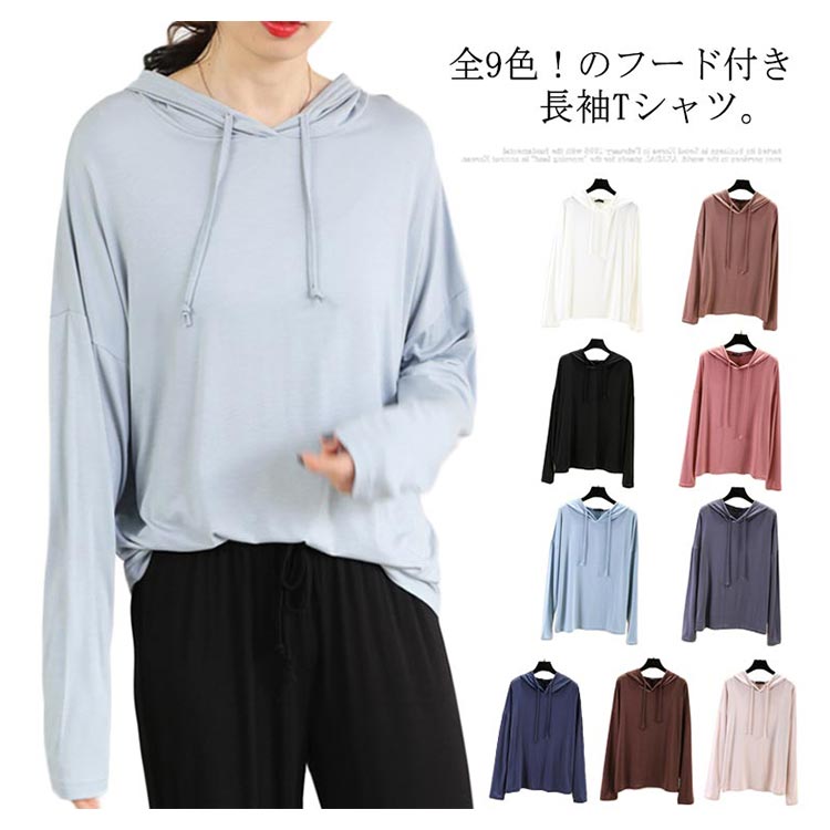全9色!フード付きtシャツ 長袖Tシャツ 送料無料 夏服 パーカー 薄手パーカー 日焼け防止 モーダル素材 レディース プルパーカー ライトスウェット プルオーバー フード付き スウェットパーカー トップス シンプル 無地 薄手 春夏秋 無地