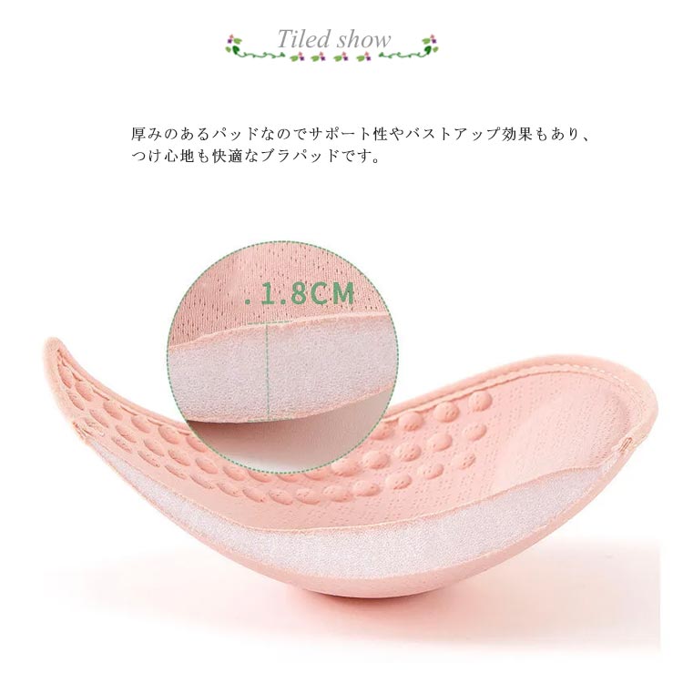 | ふわふわのパットでキレイにバストアップ。 しっかりと下からバストを持ち上げ、自然で美しいバストラインを演出します。 通気性のある素材なので、柔らかくて肌触りが良い。 スポーツブラ、ブラトップなどブラカップポケット付きのインナーにご使用できます。 厚みのあるパッドなのでサポート性やバストアップ効果もあり、つけ心地も快適なブラパッドです。 | |