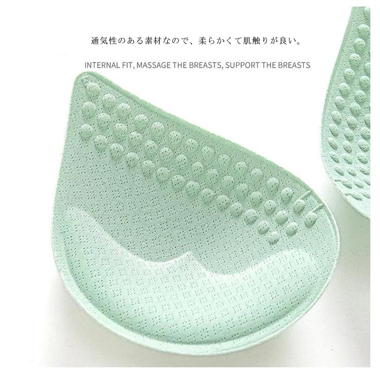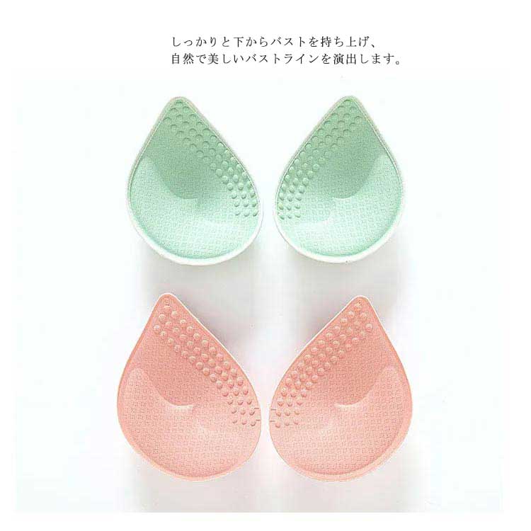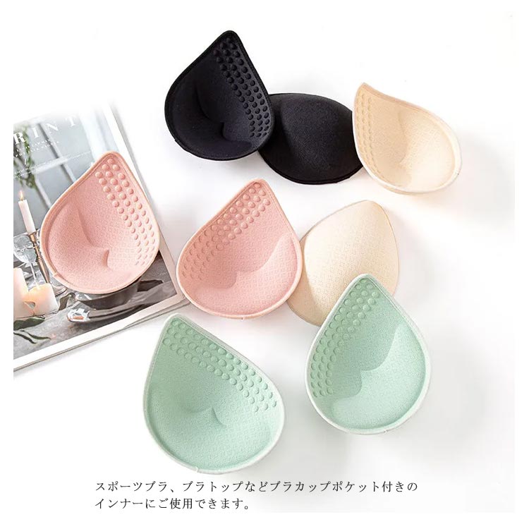 ふわふわのパットでキレイにバストアップ。しっかりと下からバストを持ち上げ、自然で美しいバストラインを演出します。通気性のある素材なので、柔らかくて肌触りが良い。スポーツブラ、ブラトップなどブラカップポケット付きのインナーにご使用できます。厚みのあるパッドなのでサポート性やバストアップ効果もあり、つけ心地も快適なブラパッドです。