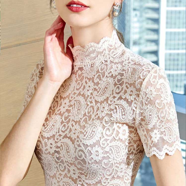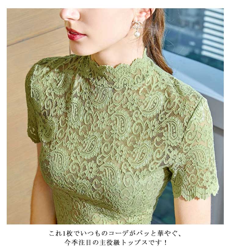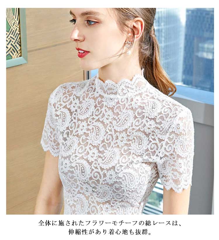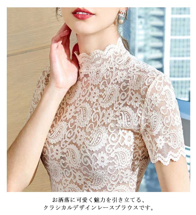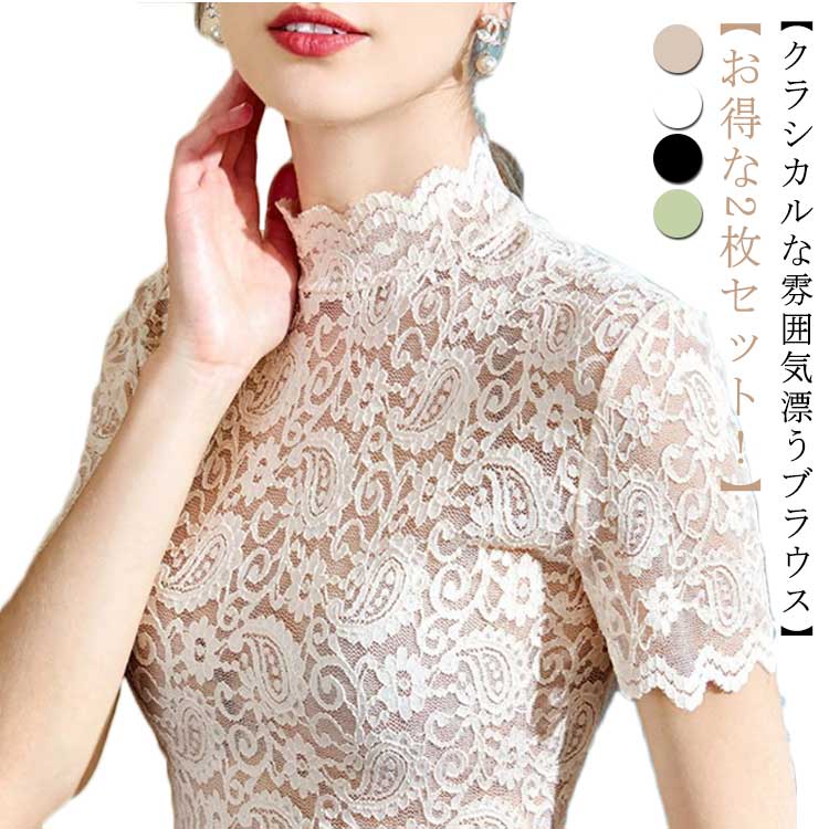ブラウス レース 春 ブラウス レディース 春夏 夏 きれいめ 半袖 上品 タートルネック 総レース カットソー 2枚組 Tシャツ ハイネック 夏 インナー 春秋 トップス 送料無料