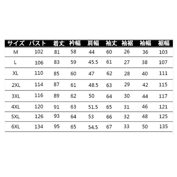 | サイズ | M L XL 2XL 3XL 4XL 5XL 6XL |