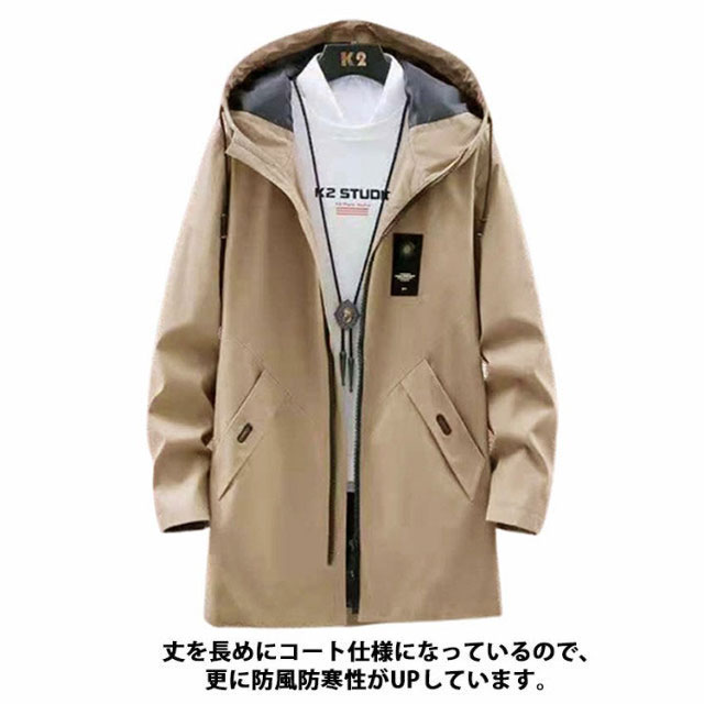 裏起毛と薄手2タイプ マウンテンパーカー メンズ 裏ボア ロング コート フード付き ウィンドブレーカー おしゃれ 厚手 春 秋 冬 アウター 裏地付き ブルゾン 裏起毛 暖かい 防寒 保温 アウトドア 防風 大人 学生 カジュアル ハーフコート 大きいサイズ 無地 シンプル