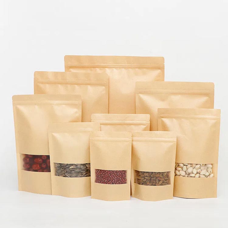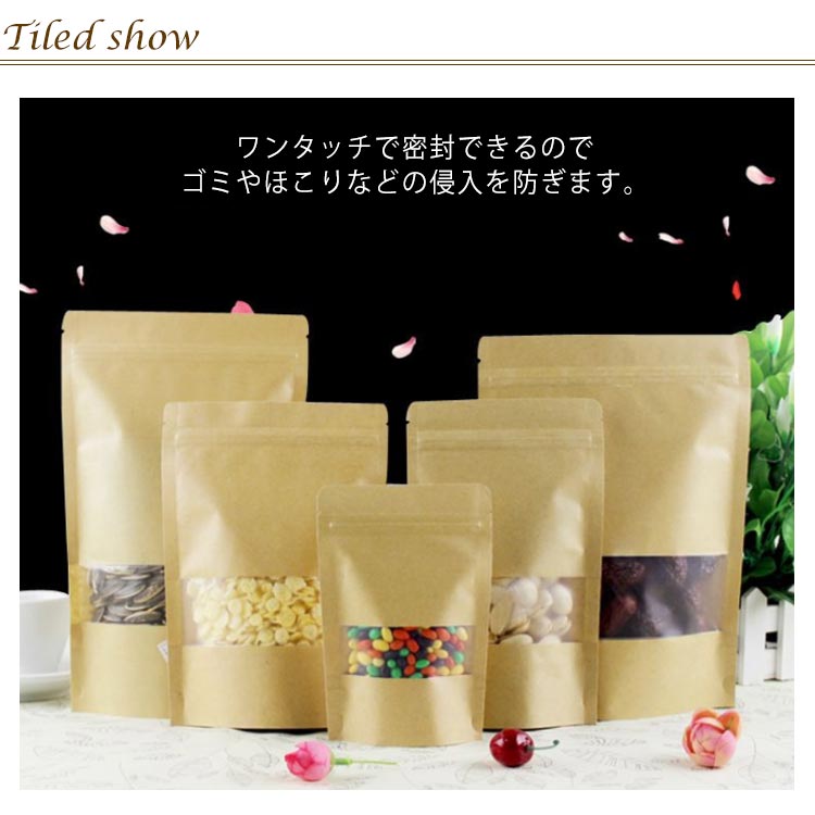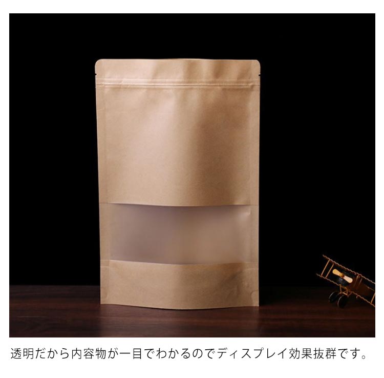 100枚入り クラフト袋 チャック付 透明 クリア クラフト袋 密閉袋 透明窓付き クラフト紙袋 ジップ袋 食品保存 食品収納袋 キッチン収納 保存袋 無地 ナチュラル お菓子 大人数 配布 入り バレンタインデー ママ会 ギフト プレゼント 送料無料 12*20cm 14*20cm 15*22cm