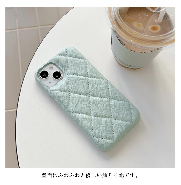 モコモコと柔らかい触り心地のキルティングiphone15ケース。背面はふわふわと優しい触り心地です。傷や汚れが付きにくいPUレザーを使用。ファッショナブルなデザインなので、コーデのワンポイントに。