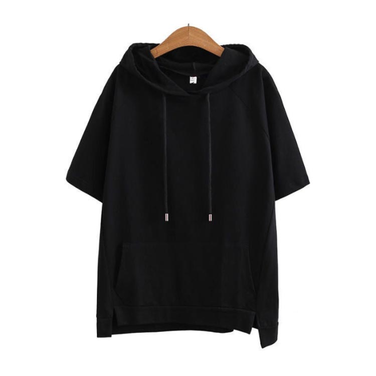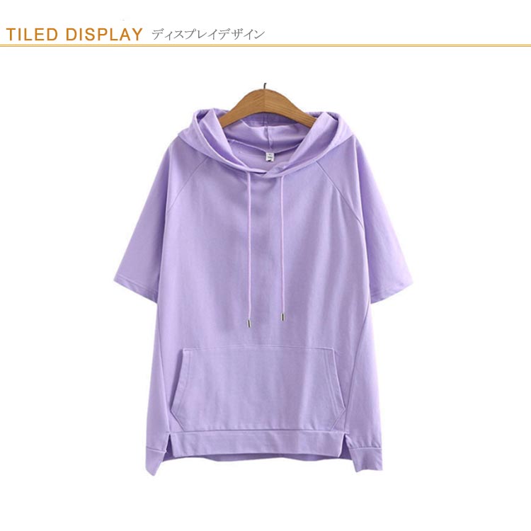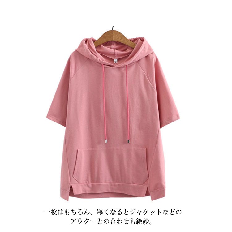 全5色×5サイズ!パーカー レディース フード付き tシャツ 送料無料 大きサイズ 半袖パーカー 5分袖パーカー プルオーバー 薄手 夏用 トップス フード付きtシャツ スリット コットン カジュアル 学生 中学生 20代30代