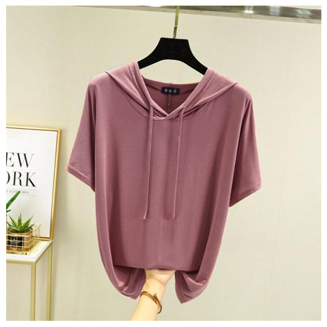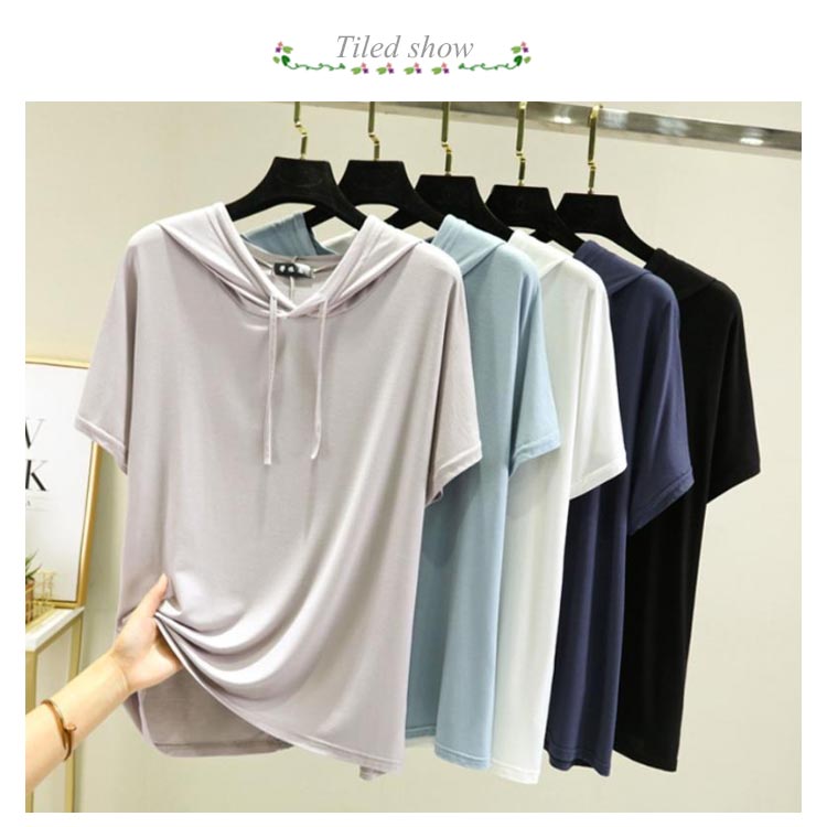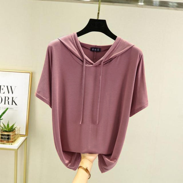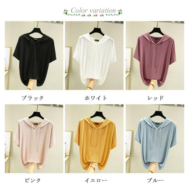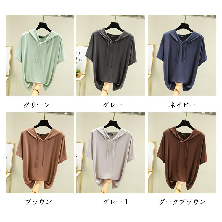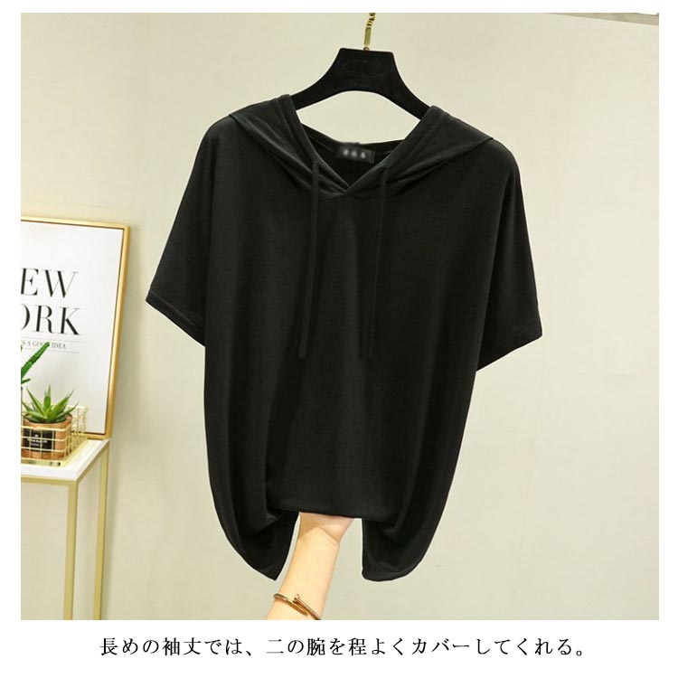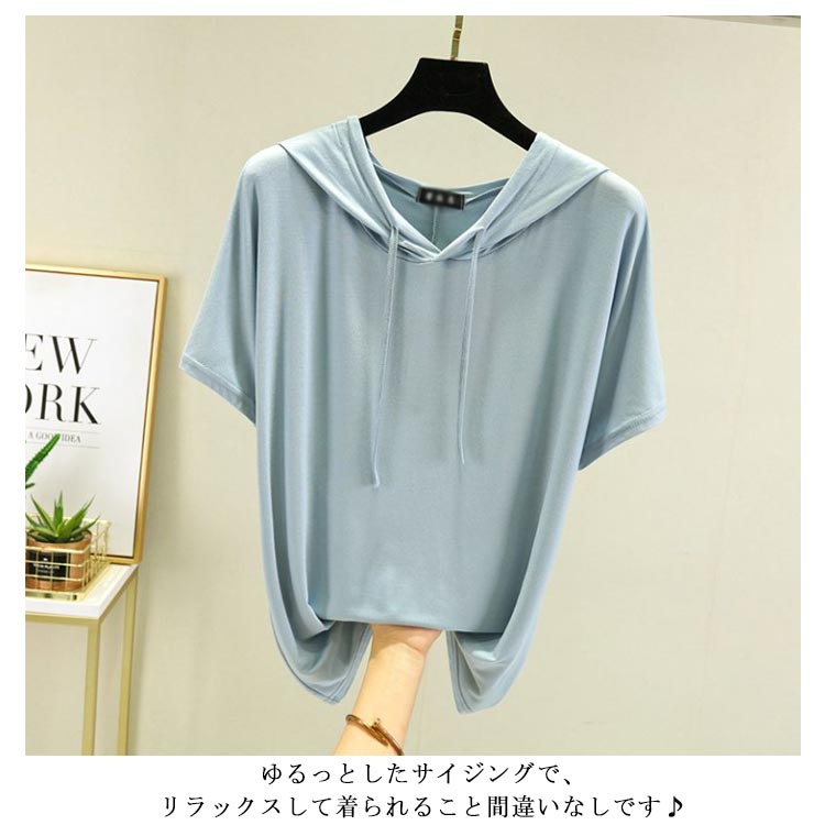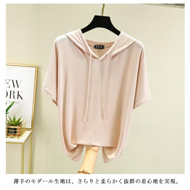 Tシャツ フード付き レディース 半袖 カットソー パーカーtシャツ ゆったり トップス モーダル 薄手 春 夏 フーディー Tシャツ 無地 シンプル トップス 大きいサイズ フェミニン 着痩せ インナー 送料無料