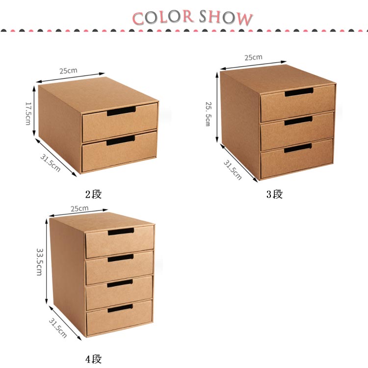 | 卓上収納に便利な紙製ボックス。 ナチュラルなデザインが部屋のスタイルが合わせやすく、見た目もおしゃれです。 上下二重にコーティングした防水素材を採用します。 多層引き出し式設計を採用し、オフィススペースを効率的に節約します。 材料を厚くするので、耐荷重がよくて、弾力が強くて、書類の収納に便利です。 | |