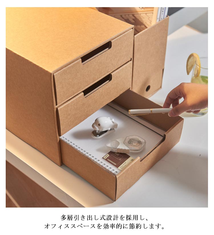 2段/3段/4段 収納ケース 引き出し 送料無料 卓上収納ケース 引き出し収納 収納ボックス 小物収納 フタ付き おしゃれ 引き出し式 紙製 押入れ用 段ボール ボックス 収納 書類 洋服 衣類 下着 おしゃれ 卓上 収納 文房具 オフィス