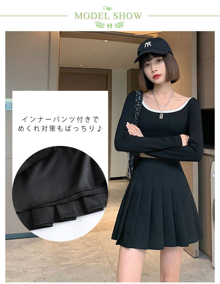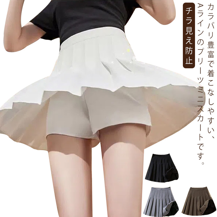 【送料無料】チラ見え防止 インナースパッツ付きミニスカートミニスカート プリーツスカート スカパン レディース ミニ丈 ショート丈 ハイウエスト Aライン フレアスカート ボトムス パンツ付スカート かわいい おしゃれ 美脚 無地