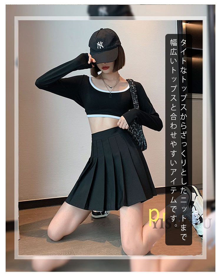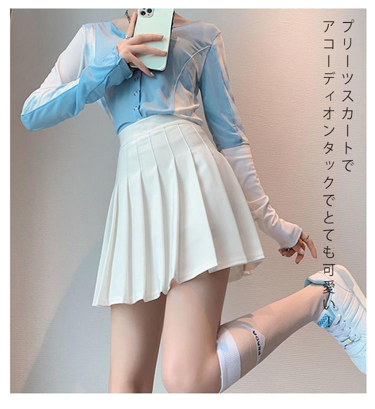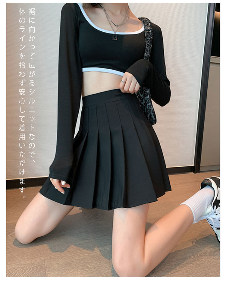 カラバリ豊富で着こなしやすい、Aラインのプリーツミニスカートです。インナーパンツ付きでめくれ対策もばっちり♪プリントTシャツをインしたり、ショート丈のトップスとの相性も抜群です。プリーツスカートでアコーディオンタックでとても可愛い!裾に向かって広がるシルエットなので、体のラインを拾わず安心して着用いただけます。タイトなトップスからざっくりとしたニットまで幅広いトップスと合わせやすいアイテムです。