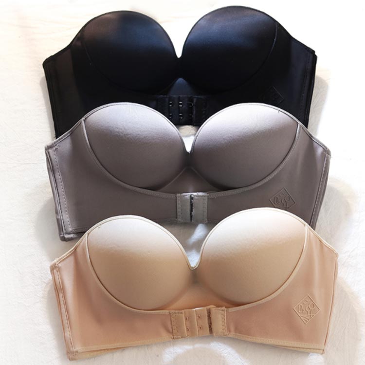 ストラップレスブラ 紐なしブラ 滑り止め 体に苦しくない 美胸美背 脇高 ノンワイヤー dカップ eカップ 大きいサイズ 高弾性 チューブトップ 柔らかい シームレスブラ 結婚式 オフショル インナー ブラジャー 寄せブラ バストアップ ブラック 肌色 グレー