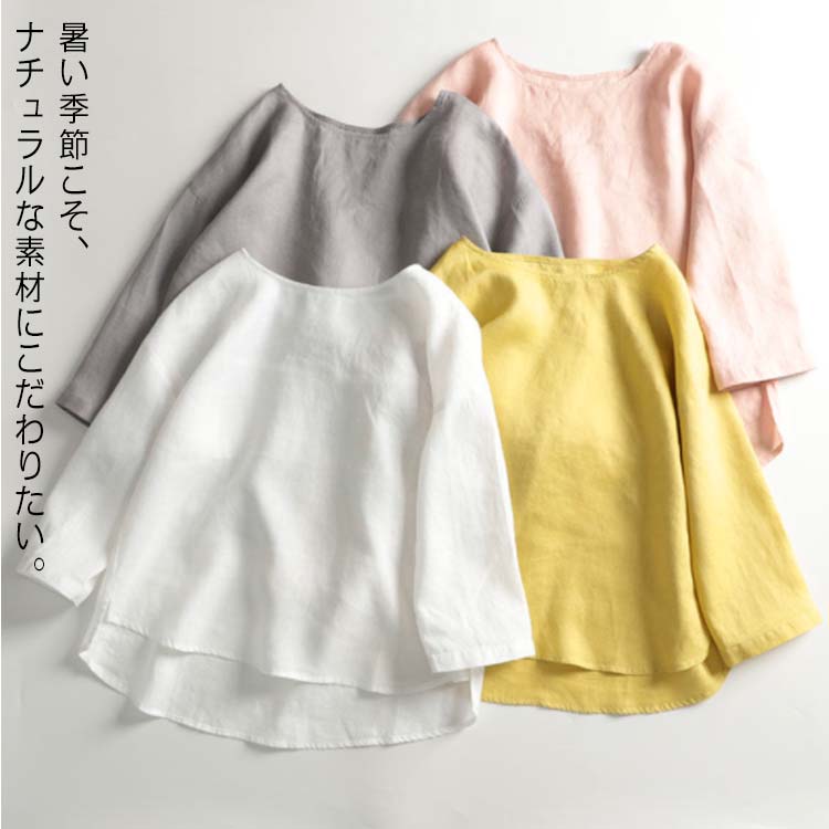 ブラウス レディース 五分袖 七分袖 リネン 半袖シャツブラウス 綿 コットン リネン 体型カバー ゆったり 可愛い 無地 プルオーバー