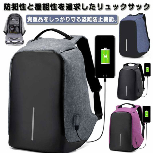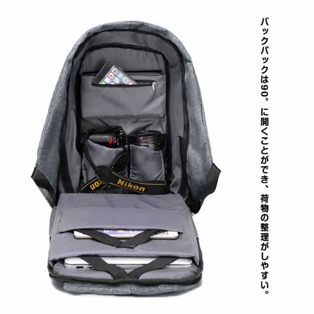 バックパック 防水 リュック 防犯 耐刃 撥水 盗難防止 バッグ バック リュック ビジネス トラベル USBポート ノートパソコン 収納 レディース メンズ 出張 旅行 通学 通勤 大容量