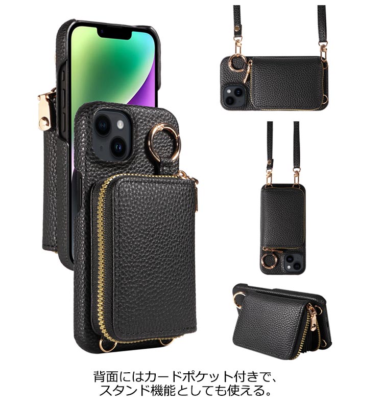iPhone 15 pro ケース リング付き 手帳型 カード iPhone15plus ケース ジャバラ式 カード収納 背面手帳型 ショルダーケース iPhone14 ケース iPhone15ケース 第三世代 SE2 スマホケース カバー ファスナー式ポケット 小銭入れ スタンド機能