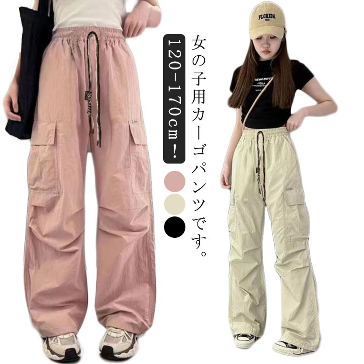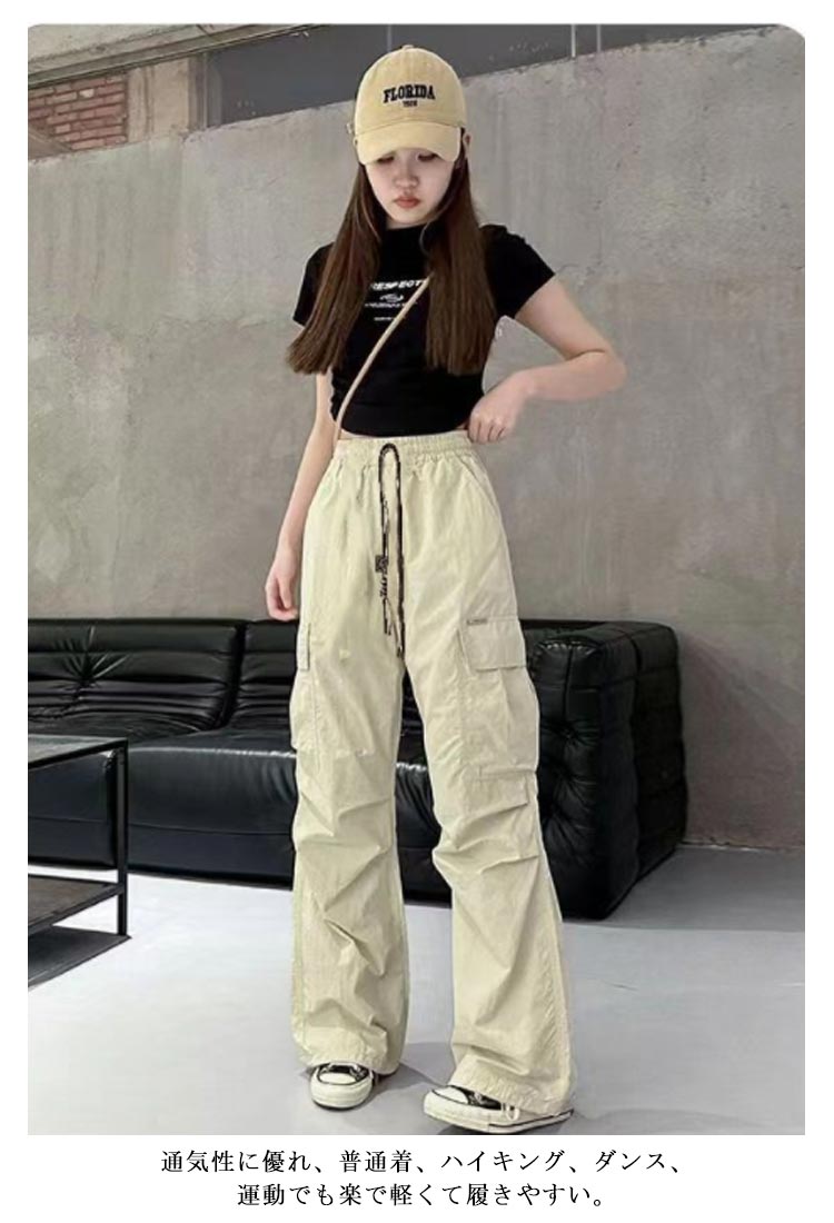 カーゴパンツ キッズ 女の子 パンツ 子供服 長ズボン ロングパンツ ウエストゴム ウエストゴム ガールズ ボトムス ポケット付き ワイドパンツ 速乾 カジュアルパンツ ゆったり ダンス衣装 ヒップホップ 通園 通学 ストリート k-pop hiphop 練習着 春 夏 120-170cm