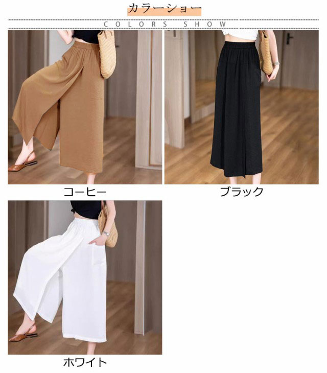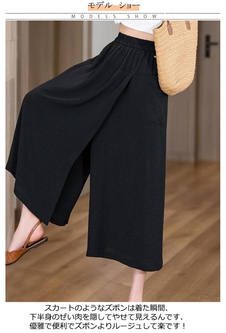 | 接触冷感ガウチョパンツ スカートのようなズボンは着た瞬間、下半身のぜい肉を隠してやせて見えるんです、優雅で便利でズボンよりルージュして楽です! 快適で涼しくい冷感生地、通気性が良く、全然ムレない、夏を涼しく快適に過ごしましょう。 ゆったりワイドシルエットだから、体型カバーも◎ | |