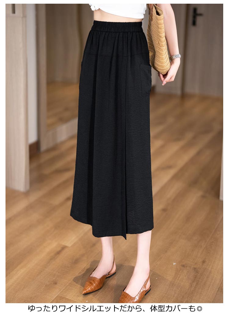 接触冷感ガウチョパンツスカートのようなズボンは着た瞬間、下半身のぜい肉を隠してやせて見えるんです、優雅で便利でズボンよりルージュして楽です!快適で涼しくい冷感生地、通気性が良く、全然ムレない、夏を涼しく快適に過ごしましょう。ゆったりワイドシルエットだから、体型カバーも◎