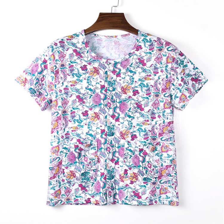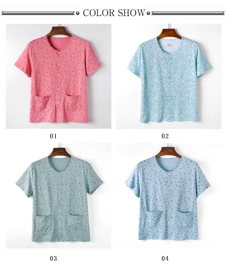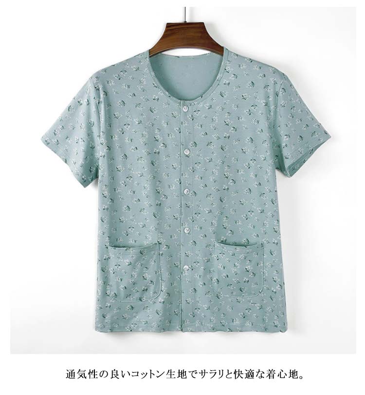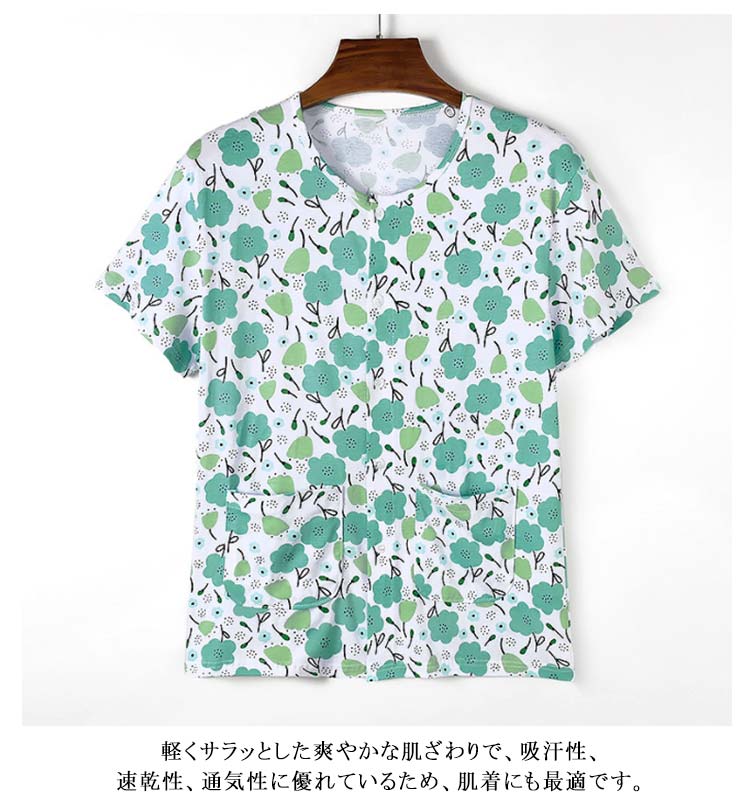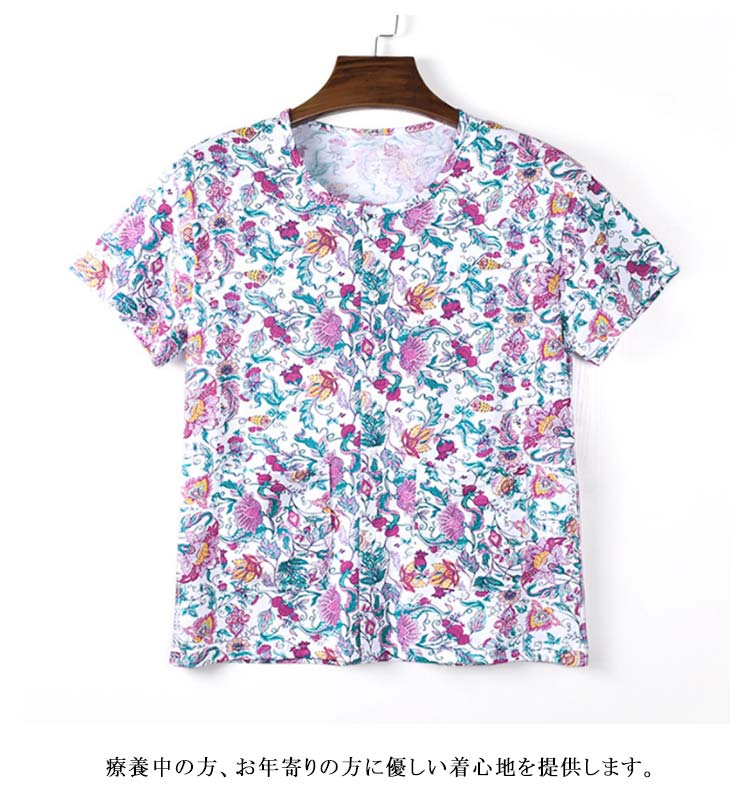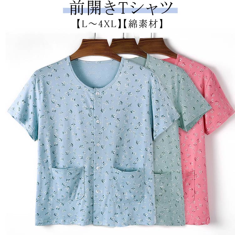 前開き Tシャツ レディース 綿 ポケット付き 半袖 トップス クールネック ルームウェア 無地 吸汗速乾 薄手 介護用 部屋着 女性 婦人用 快適 前あき 高齢者 シニア コットン 夏 パジャマ カットソー 入院 手術 大きいサイズ