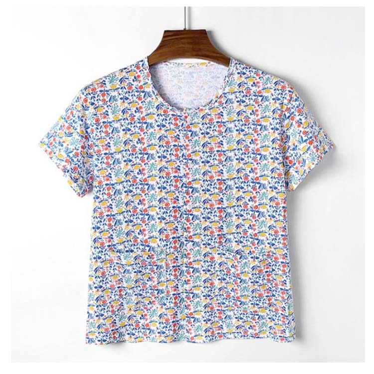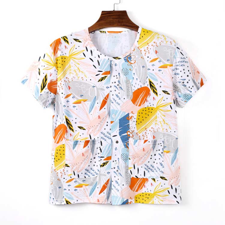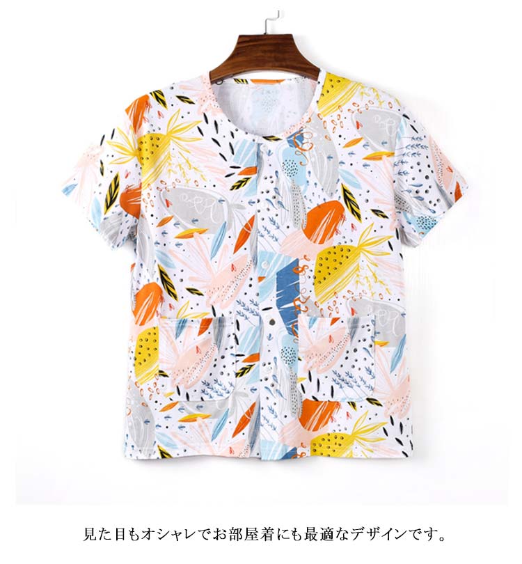 | 【前開きTシャツ】【L~4XL】【綿素材】 世代を限定しないおしゃれなデザインの前開きTシャツです。 通気性の良いコットン生地でサラリと快適な着心地。 開閉が可能なボタン仕様で、着替えが楽です。 療養中の方、お年寄りの方に優しい着心地を提供します。 見た目もオシャレでお部屋着にも最適なデザインです。 軽くサラッとした爽やかな肌ざわりで、吸汗性、速乾性、通気性に優れているため、肌着にも最適です。 | |