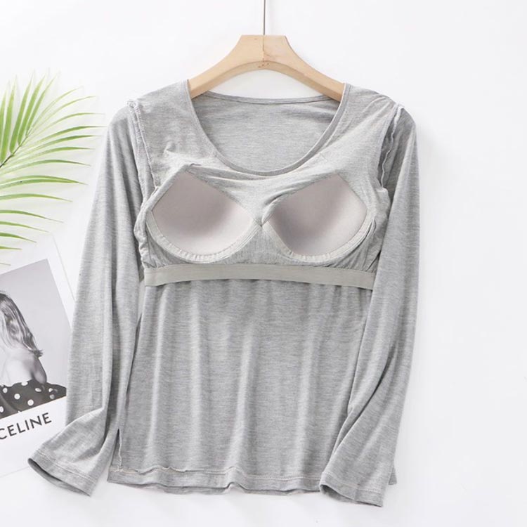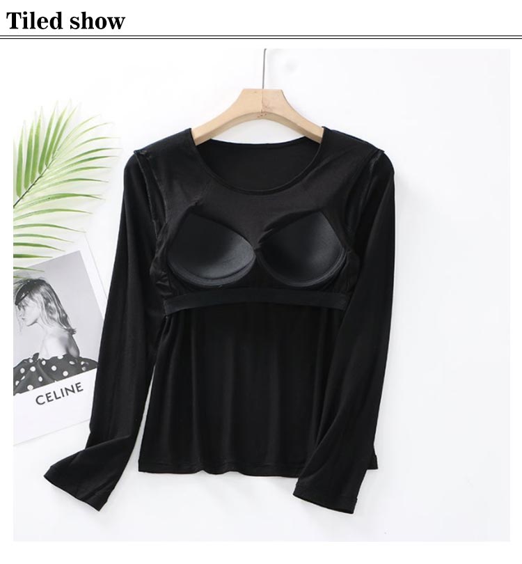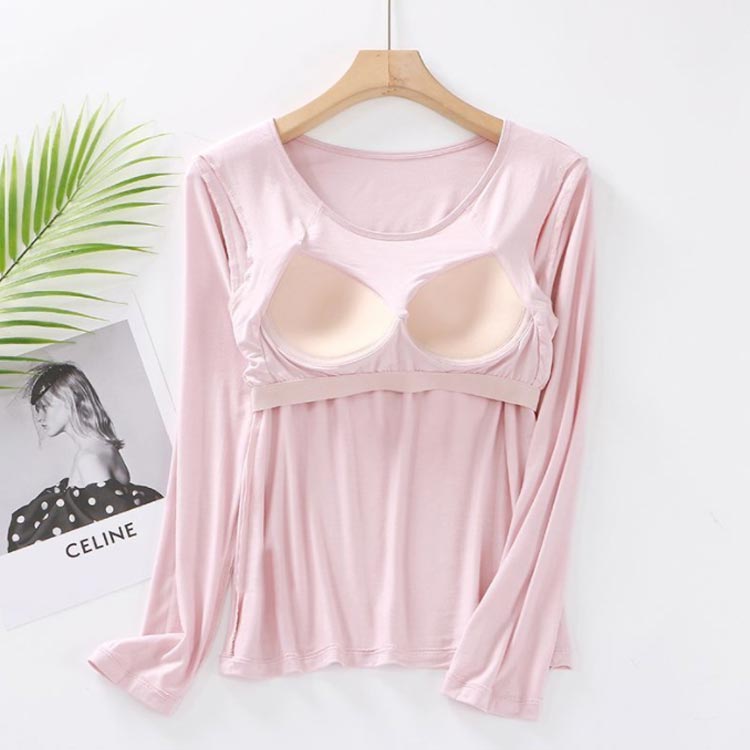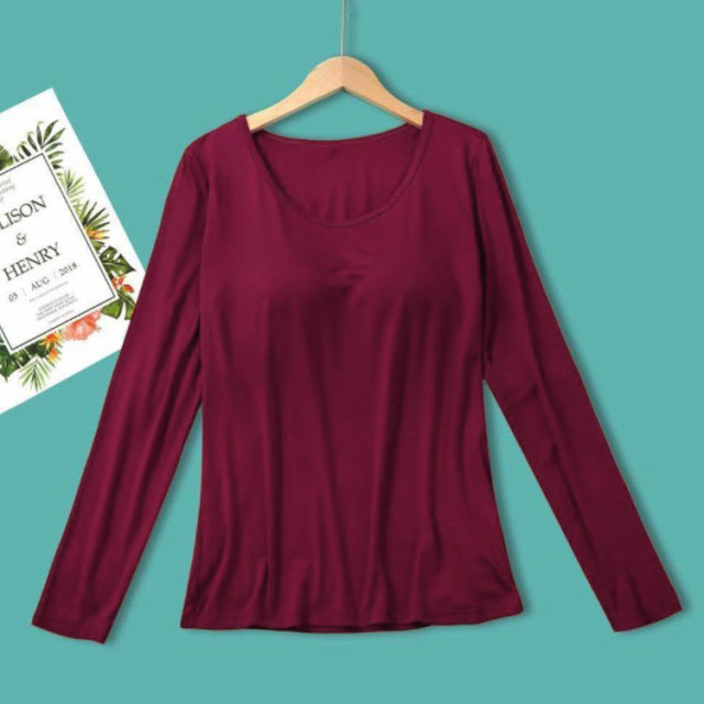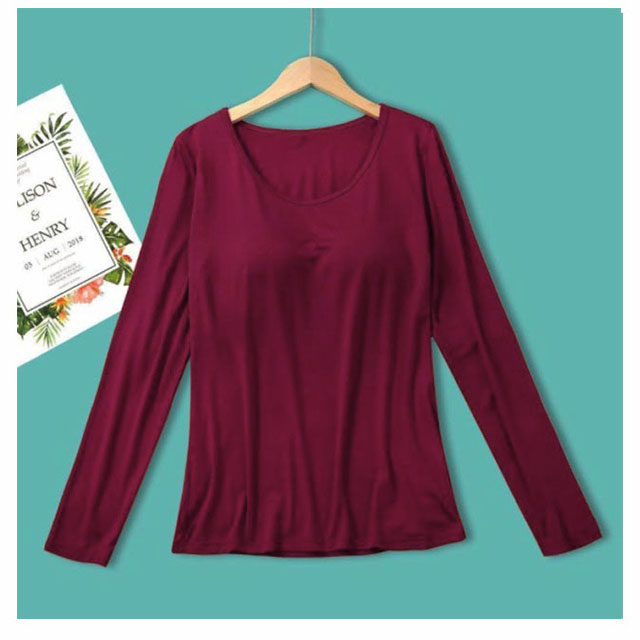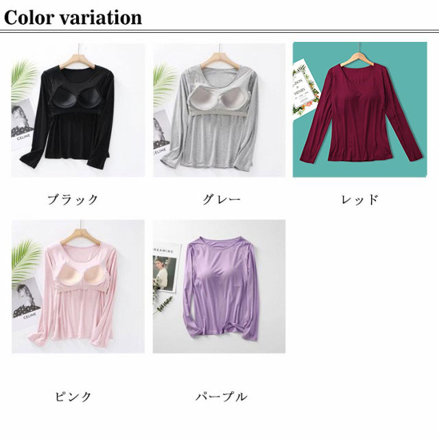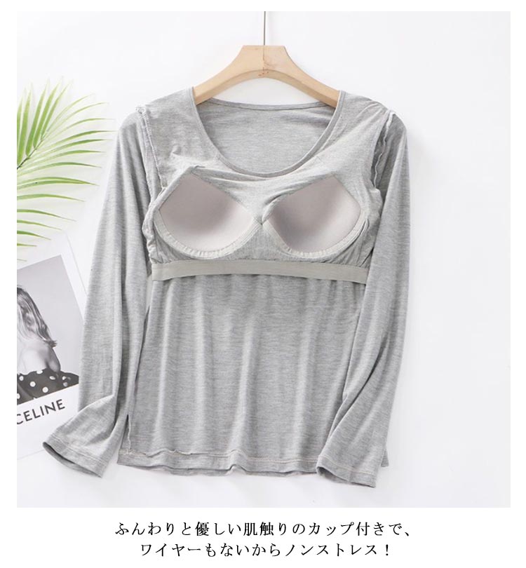 パット付長袖Tシャツ ラウンドネック パット付 長袖Tシャツ ラウンドネック レディース インナー トップス 肌着 Uネック カップ付き インナーシャツ カットソー ストレッチ 伸縮性 ロンT 長袖 締め付けない ルームウェア 部屋着 無地 シンプル 春秋 送料無料